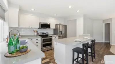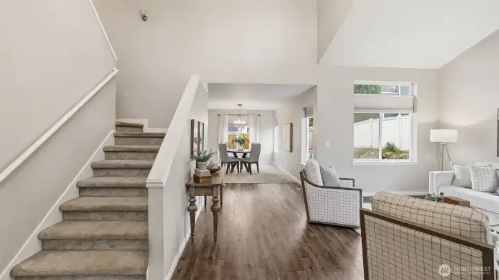 Welcome to the nicest development in Enumclaw! Entirely updated inside and out. Featuring rustic vinyl plank flooring, quartz countertops, new doors and molding, and numerous other upgrades. The floorplan features a grand entry with cathedral ceilings in the formal living room, formal dining, updated kitchen, and family room downstairs. Upstairs are four bedrooms with a spacious primary ,large primary bath, and walk in closet. The upstairs guest bathroom is updated as well! The three car garage is HUGE! Enjoy the deck, storage shed. and irrigated container garden outside. This property has it all!