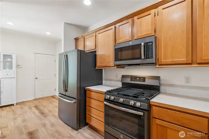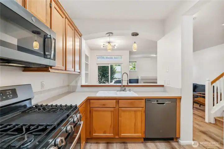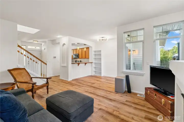 Welcome to this stylish 2-bed, 2.5-bath townhome in a gated community in Renton’s desirable Benson Hill neighborhood! This light-filled home features 9-foot ceilings, an inviting gas fireplace, LVP flooring throughout, and AC! The kitchen offers an open-concept flow with bar seating and pendant lighting. Upstairs, enjoy two spacious bedrooms as well as a landing that can be used as a reading spot as well as an office space. Relax on your private back patio with little to no maintenance in the warm summer months! This home comes with a 1 car garage and it's ideally located just 7 minutes to highway access for easy commuting. Don't miss this move-in-ready gem in a well-maintained community, call to tour today!