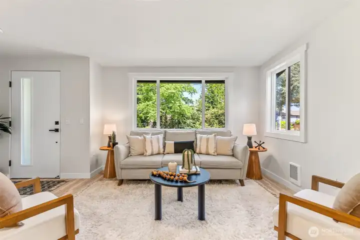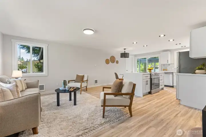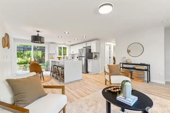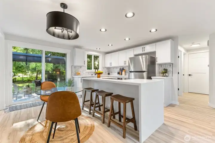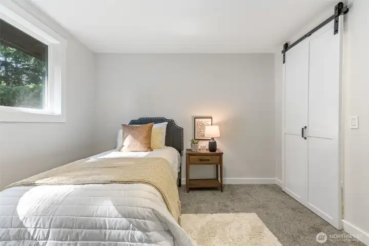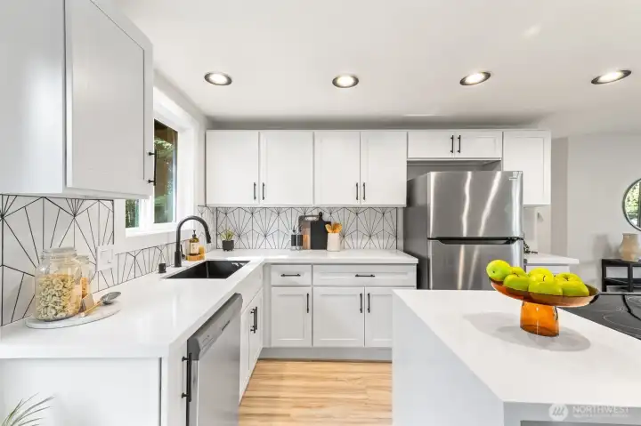 Stunningly renovated modern farmhouse on a rare, fully fenced 0.3-acre lot in the highly desirable Edgewood area. Every detail has been thoughtfully updated—no expense spared. The gorgeous kitchen features brand-new appliances, custom cabinetry, and a stylish tile backsplash. The spa-like bathroom is wrapped in elegant tile. Custom barn doors throughout add a touch of charm. This 2-bedroom, 1-bath home also includes a new roof, new siding, Leaf Guard gutters, and new vinyl windows. An oversized 480 sq ft garage, two storage sheds, and RV/trailer parking offer flexibility. Enjoy mature landscaping, a new pergola, and a spacious yard—perfect for entertaining. Quiet, private neighborhood. A true turnkey gem!