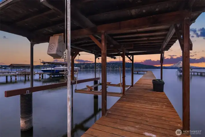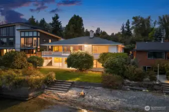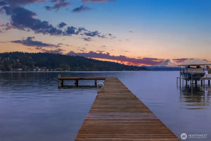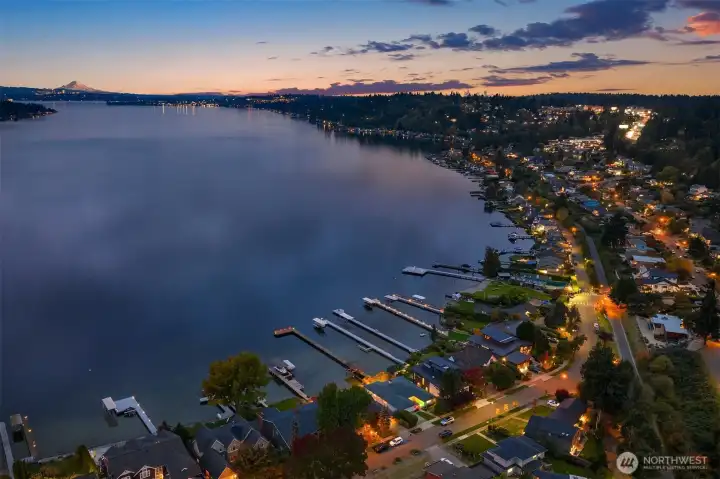 Lake Washington Waterfront w/Grandfathered in private Dock, and boat lift in heart of Sheridan Beach. Rare opportunity to own in one of the lake's most desired communities. Classic mid-century home with stunning lake and Mt. Rainier views, 60 FT of WATERFRONT.. Picture windows capture unobstructed Lake views of the ever-changing PNW seasons. This 3,300 sq ft, 4-bed, 3-bath home features main-level living with three bedrooms, two baths. Lower level offers family room with wet bar, fourth bedroom, workshop, and wine storage. Enjoy exclusive Sheridan Beach Civic Club access and prime location minutes from Seattle and the Eastside. Ready for a remodel or build your dream lakefront estate among neighboring luxury homes.