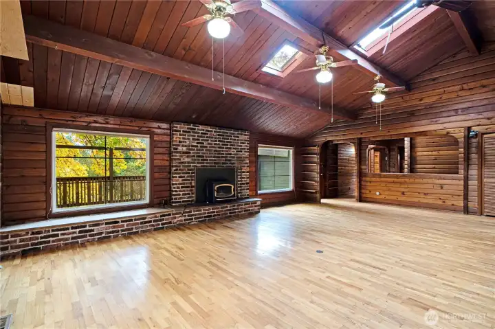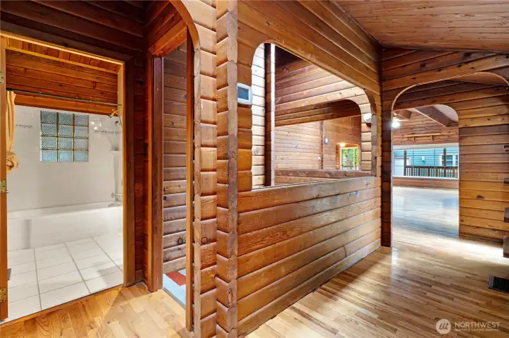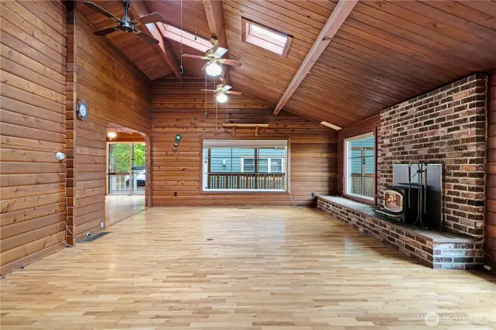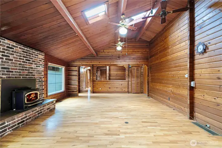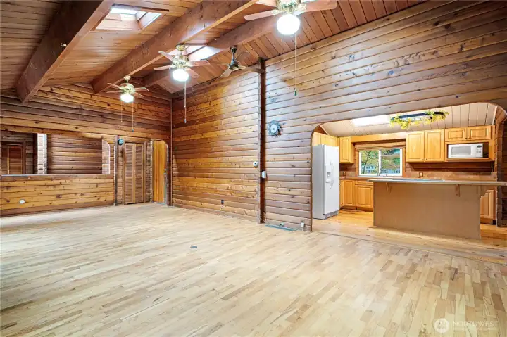 Welcome home to this cozy Pan-Abode log retreat, set on a beautifully cared-for 0.36-acre lot. There’s plenty of room for everyone with a large 28’ x 32’ shop that includes a handy half bath, plus generous paved and RV parking. Inside, the open living area feels bright and welcoming with vaulted ceilings and a pellet stove for those chilly evenings. The main floor offers a comfortable primary bedroom and two spacious secondary rooms. Downstairs you’ll find a big rec room, a quiet office or play space, and an additional full bath—perfect for guests or fun. The oversized shop is ready for hobbies, storage, or weekend projects. This home has all the space and warmth you’ve been looking for!