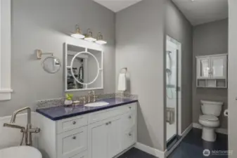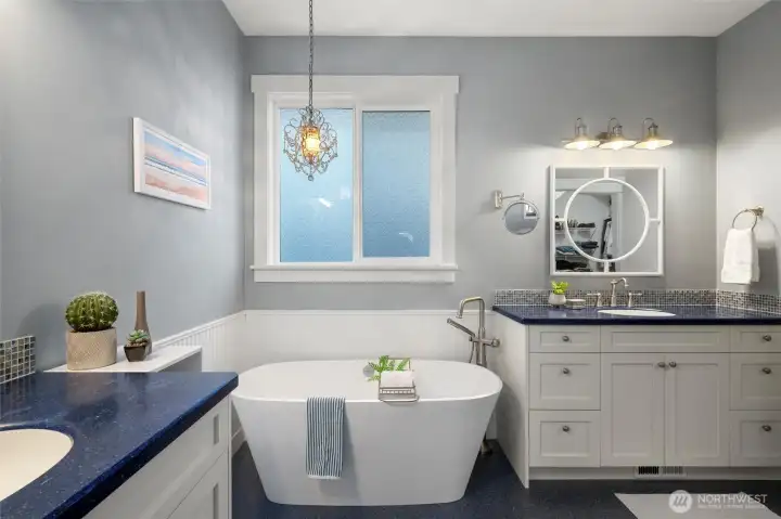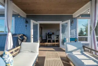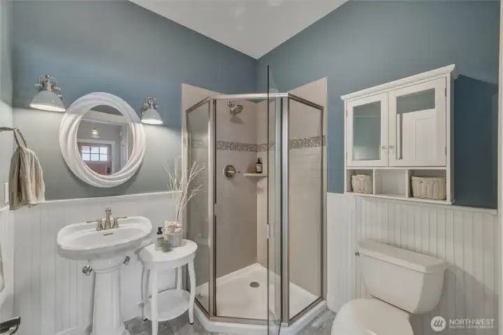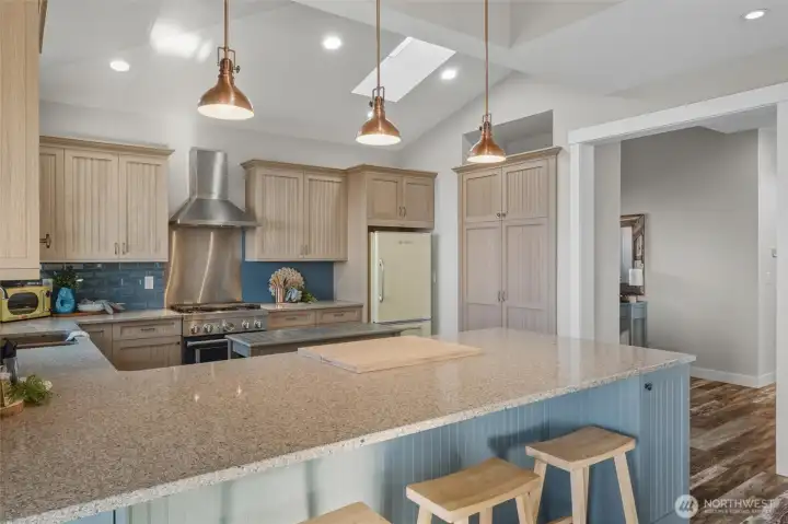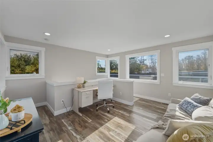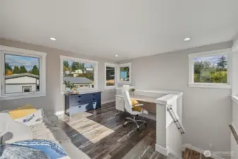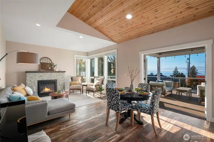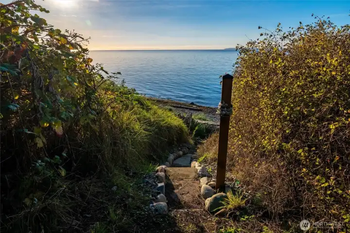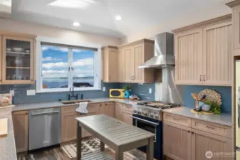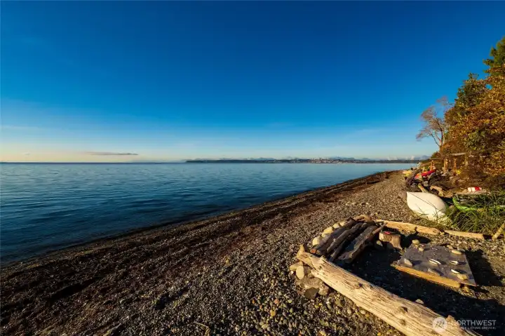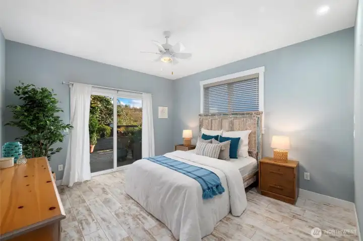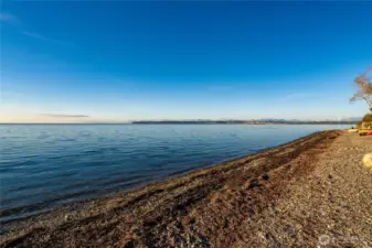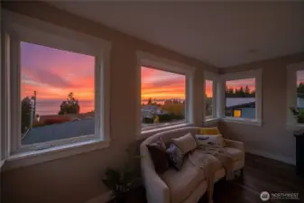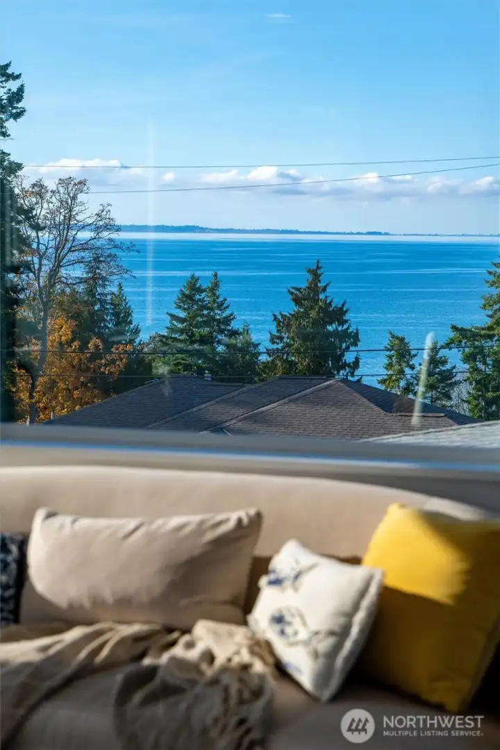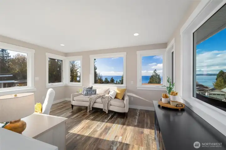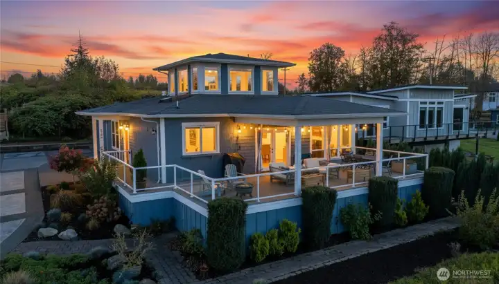 Immaculate custom home with spectacular views of the bay, islands, & Canadian city skyline. Located in a quiet neighborhood surrounded by beautiful homes & just a short walk to the private community beach. Open floorplan with a large chef's kitchen, dining area, & living room with vaulted ceilings & gas rock fireplace. 2 bedrooms on the main level including the primary suite with access to a flagstone patio with privacy for relaxing. The upstairs "lookout loft" is the perfect flex space for guests, an office, or hobbies with the best views in the house! Outdoor deck expands the entire front of house with tons of room for entertaining. Beautiful landscaping throughout property. 2 car attached garage. Enjoy the beachy vibes and easy living!