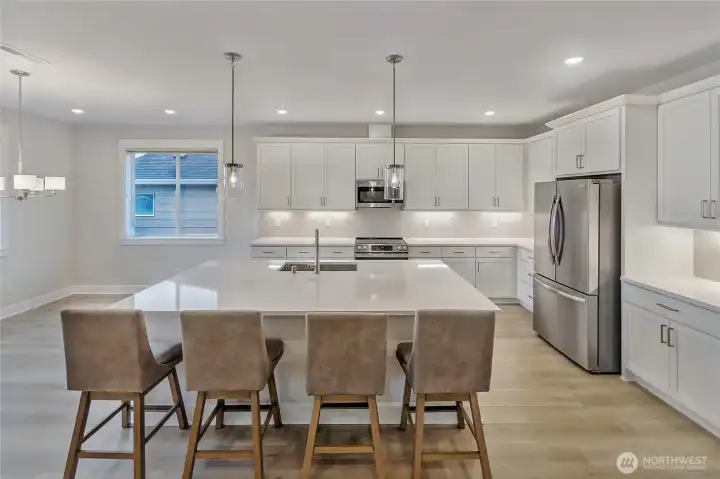 UPDATED PRICE! Turn-key home in the desired 55+ community of Ovation at Oak Tree. This 2 bed + Den/office home offers easy single level living with no-step entry & quality finishes throughout. Enjoy wide planked LVP flooring, quartz counters, ultra-glide blinds, additional storage cabinets, plus a heat pump! Spa like primary bath with dual sinks, tiled shower, & large walk-in closet. Situated on a corner lot, the backyard is a showstopper with gorgeous landscaping, a soothing fountain, raised garden beds, low maintenance turf, pavers, plus an oversized covered patio...all with a Mt Rainier view! Active lifestyle community with trails & clubhouse, all situated on a 40-acre Oak Preserve. Perfect blend of comfort, style, and peaceful living!