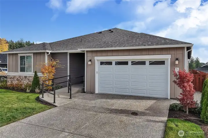 NEW ON MARKET! Turn-key home in the desired 55+ community of Ovation at Oak Tree. This 2 bed + Den/office home offers easy single level living with no-step entry & quality finishes throughout. Enjoy wide planked LVP flooring, quartz counters, ultra-glide blinds, additional storage cabinets, plus a heat pump! Spa like primary bath with dual sinks, tiled shower, & large walk-in closet. Situated on a corner lot, the backyard is a showstopper with gorgeous landscaping, a soothing fountain, raised garden beds, low maintenance turf, pavers, plus an oversized covered patio...all with a Mt Rainier view! Active lifestyle community with trails & clubhouse, all situated on a 40-acre Oak Preserve. Perfect blend of comfort, style, and peaceful living!