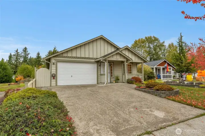 Low maintenance move-in ready rambler in the heart of Birch Creek (55+) community. Highly desired floor plan with covered front porch, spacious main living area with vaulted ceilings, and charming primary bedroom with full ensuite including relaxing jetted tub. Sun-filled kitchen- perfect for entertaining- leads out to the fully fenced low maintenance back yard with Trex decking- ready for years of carefree living. Also featured: in-house mudroom with washer/dryer & garage access, second full bedroom perfect for office, guest room, storage or more. The community features walking trails, a club house, and RV parking. This home is truly a gem ready for you to find and call home.