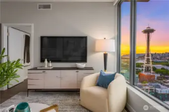 Spire Condominiums, at the apex of Belltown, South Lake Union, and Denny Triangle, offers iconic Space Needle and water views unlike any other new condo building in Seattle. This coveted location allows easy access to retailers, restaurant/bars, technology centers, arts, outdoor recreation and entertainment. Spire rises high at 41 stories of incredible spaces. This 1 bed has Lake Union, Sound and Space Needle views, a two entry bathroom, large walk-in closet, custom built-ins, + parking. Amenities include concierge, top floor fitness center, pet run, 40th floor clubroom, dining, terraces, co-working space, conference room, theater, movement studio + more. Buyer must register broker on first visit. Ask about our Fall Rate Buydown Incentive.