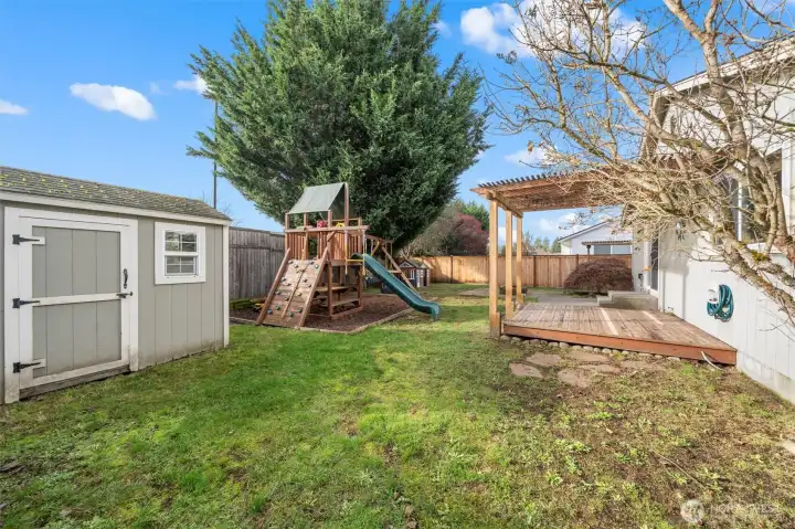 Charming home in the heart of Yelm with everything today’s busy buyers want — low-maintenance single-story living, smart updates, and a backyard made for summer evenings. This 3-bed, 2-bath 2003 built home delivers a vaulted great room that flows into an eat-in kitchen and out to the deck/patio, surrounded by a fully fenced private yard with RV slab. Ideally situated on a cul-de-sac in Hawks Landing, you’re minutes from shopping, parks and schools but still enjoying that peaceful neighborhood feel. Walk to Ridgeline Middle School. With a quick commute to Olympia and JBLM. This one won’t last long.