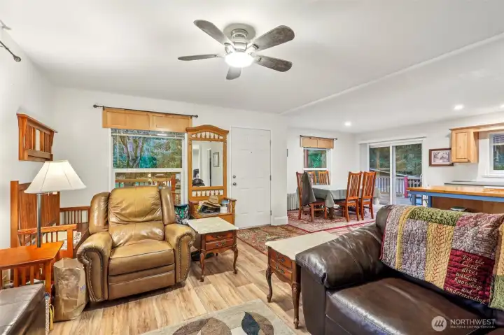 Experience the charm of farm-style living on this inviting 5-acre property featuring 2 bedrooms & a versatile den/office, perfect for flexible living. Designed for those who love working the land and enjoying the outdoors, the approx. 3-acre pasture offers space for animals or future projects, while the fenced garden is ready for vegetables, roses & seasonal plantings. Established apple & plum trees add to the harvest-ready setting. A striking weeping willow highlights the circle driveway & the backyard chicken coop brings true homestead appeal. The fully fenced grounds provide privacy and room to roam, while the wraparound deck—from the front porch to the backyard—creates the perfect place to relax & take in the peaceful, rural atmosphere.