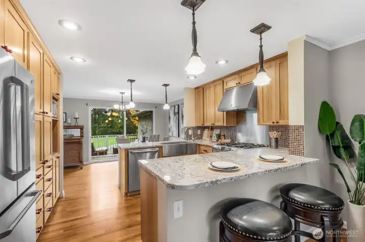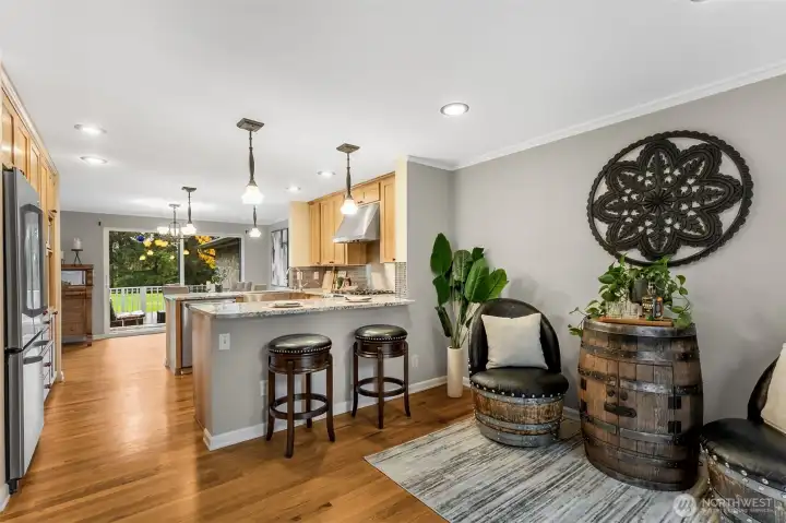 Wife say's (Don't give it away,) I say we've already purchased, are motivated, and the first full price offer will get the best 3-bdr townhome in Inglewood Village. Our neighbor #6522 (2-bdr) sold for $899k. Our kitchen faces an expansive, active view of # 9 hole with wild life and steady golfers. Oversized deck, very light and open, custom finishes, new remote gas fire place, new furnace are just some of great features. Inglewood Golf Club, Burke Gilman Trail, easy acess to both East side and Seattle, Kenmore, Bothell and Lake Forest are all walking distance. This is a small, well run complex with obvious pride of ownership. I am sadly leaving after 18 yrs. Hurry, this won't last.