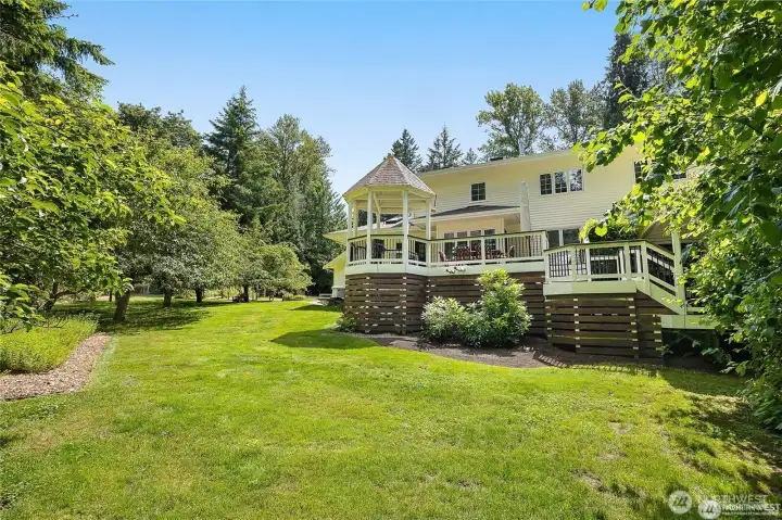 RARE OPPORTUNITY: OVER 5 ACRES, minutes to Redmond, Woodinville & 405. The home boasts over 4000sqft of living space spread over 3 stories, a multi-stall barn, fenced paddocks, a fruit orchard, creek access, a sport court & ALL THE PRIVACY YOU COULD ASK FOR! An inviting covered porch welcomes you home, and the main level reveals a warm living room w/ fireplace, updated kitchen, massive family room, laundry, den & 2 powder rooms. Upstairs are 3 bedrooms and a luxurious master suite-- complete with double sided fireplace (bedroom/bathroom) and custom closet. The basement features a large gathering room w/fireplace a huge gameroom, extra room with Murphy bed, bathroom, and LOTS of under-house storage. Huge multi-level deck w/ covered areas!