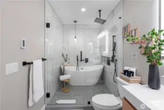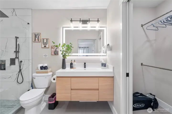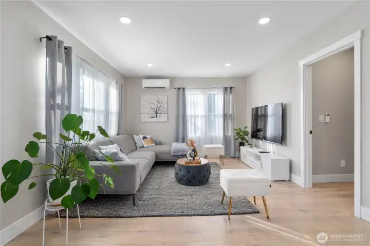 Craftsmanship meets Modern Comfort in this stunning, fully remodeled gem. The 1750sf main residence offers 3 bedrooms/2-heated tile floor bathrooms. Bright open concept living areas on the main floor feature chef’s kitchen, luxury master suite, laundry room, and engineered wood surface. Upstairs, 2 spacious bedrooms, open loft, and 2 large attic storage. Basement unit offers 2-bed/1-heated tile bath, kitchen, washer & dryer, and a separate entrance. Exterior amenities include an oversized corner lot, tall hedges for privacy, patio, RV-parking, and dedicated parking. Rebuilt from studs—New main water line, electrical, plumbing, roof, insulation, mini-split heating & cooling system, gas tankless W/H, lighting & hardware fixtures.