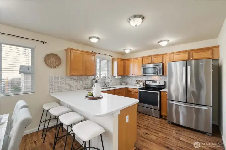 Welcome to this charming 3 bed, 2.5 bath home. Inside you'll enjoy a large perfect for relaxation living room with vaulted ceilings and cozy fireplace, beautiful open kitchen complemented by quartz countertops & stainless steel appliances, dining room with slider to a covered deck that is perfect for entertaining year round, primary bedroom with private ensuite, mini split system ensures comfort year-round. Outside meticulously maintained fully fenced yard with garden beds, fire pit area, shed, attached 2-car garage, ample parking and there is no HOA. Close proximity to freeways, stores complete this must-see gem!