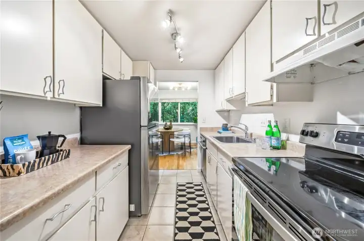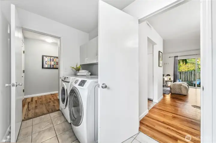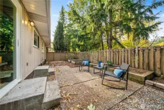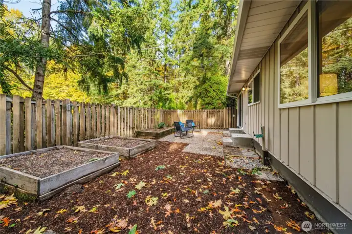 Welcome home to this beautifully maintained one-level townhouse in the heart of Kingsgate, where comfort and convenience meet serene natural surroundings. The large west facing patio and backyard are perfect for unwinding in your vegetable garden or summer BBQ's. It offers privacy as an end lot and quiet setting overlooking the Tolt Pipeline trail. Western light flows through the ample windows and slider into the main living area. Enjoy the ease of one level living with spacious living areas and bedroom and separate laundry area with additional space for an office or hobby area. The large-detached garage also has additional storage for you. Only blocks to Kingsgate shopping areas and access to the new Totem Lake ammenities!