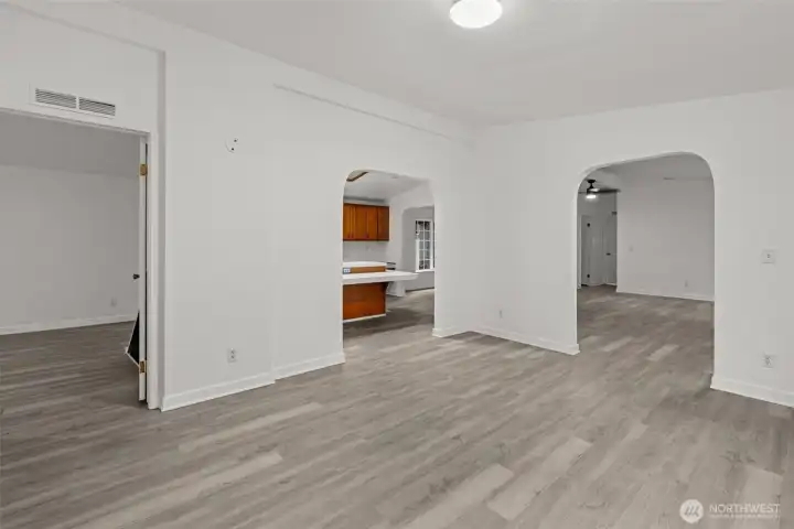 Welcome to your coastal escape in Ocean Park! This 4-bed, 2-bath, 1,782 sq ft home has been tastefully updated with new floors, fresh paint, and lighting throughout. The open layout features vaulted ceilings, a spacious kitchen with island and breakfast bar, and large windows that flood the living and dining areas with natural light. The generous primary suite boasts a walk-in closet, jetted tub, and private access to a screened porch. Set on a serene 0.34-acre lot, you'll love the koi pond, landscaped yard, detached workshop, and covered 2-car carport. Enjoy ultimate privacy just minutes from the beach—this is PNW living at its finest!