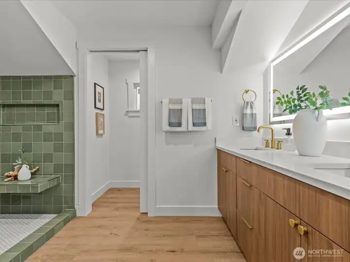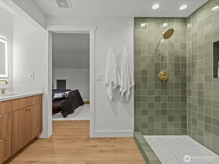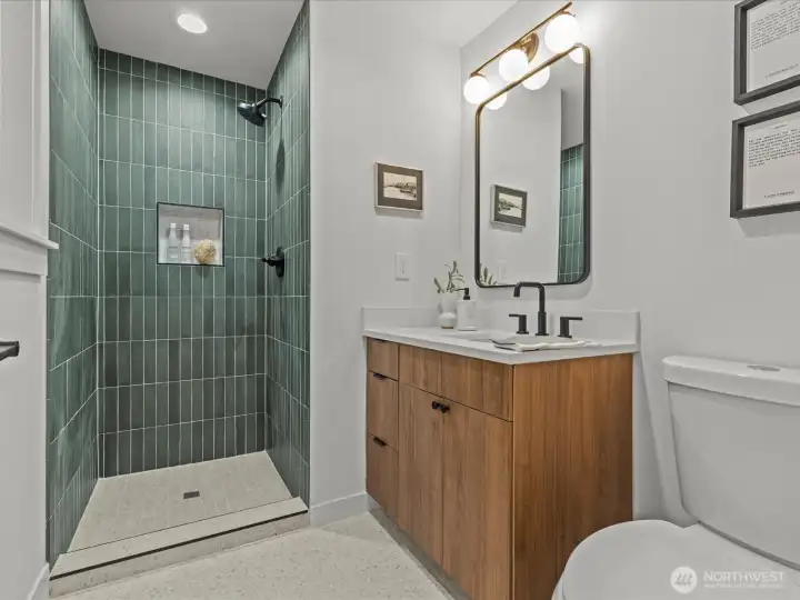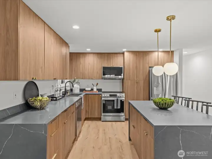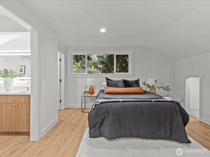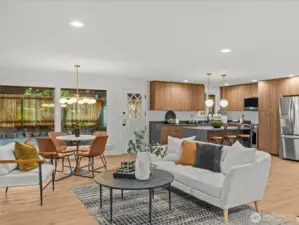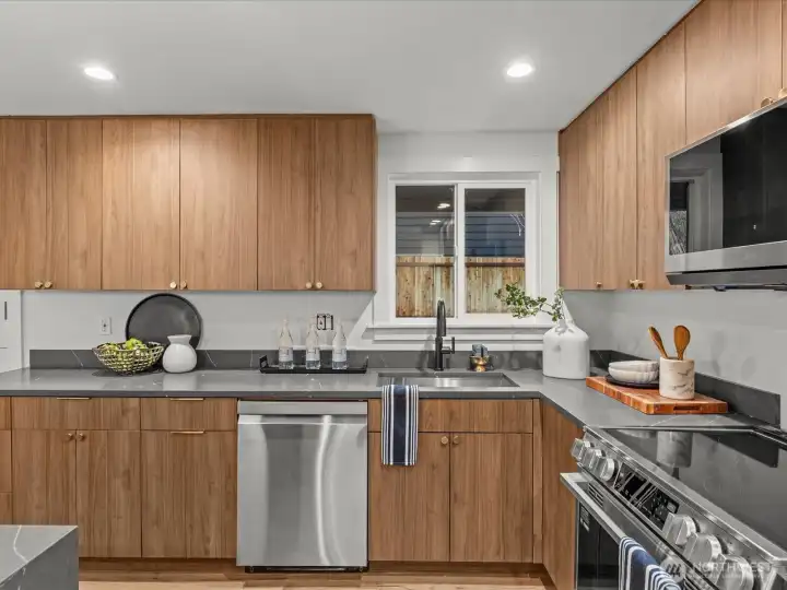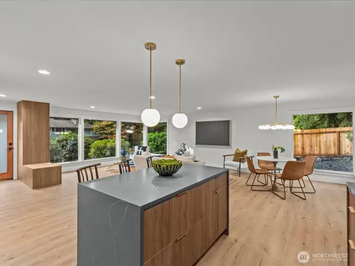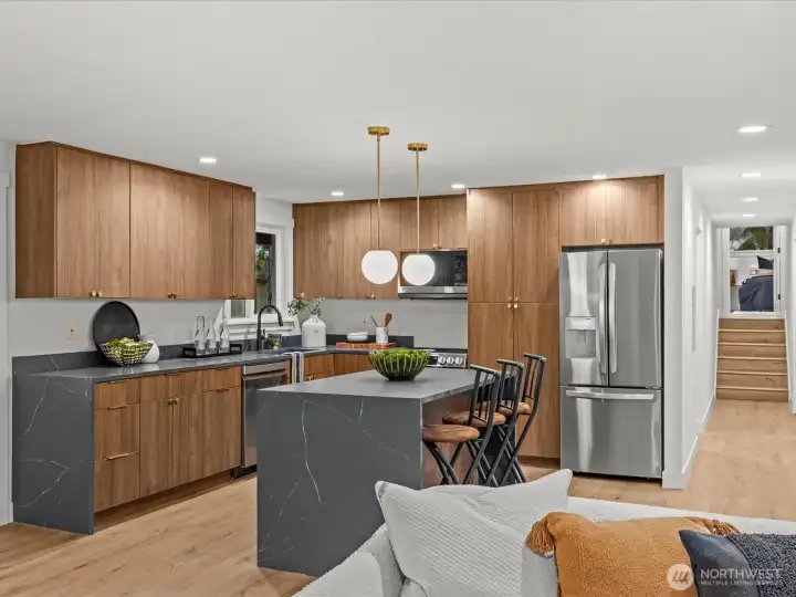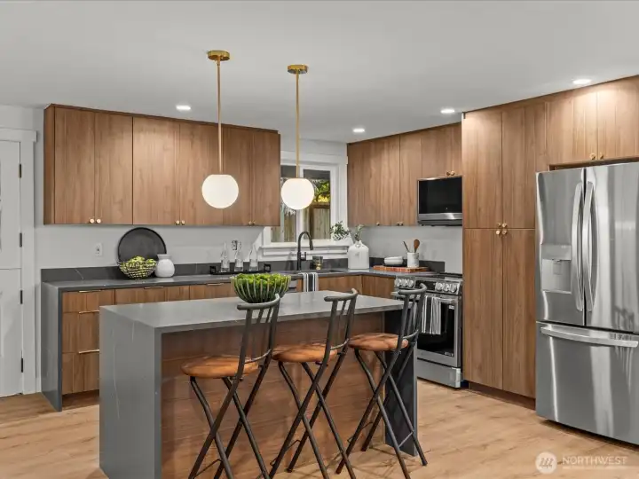 Mid-Century Style Meets Modern Comfort Near the Beach. This turnkey home offers curated modern finishes and design in a private, walkable location. Discover an open living space with crisp finishes, warm wood tones, and natural light with huge corner windows. Enjoy two spacious primary suites with ensuite baths. Entertain in your fully updated kitchen with stainless steel appliances. The open layout flows to a low-maintenance private backyard with a fire pit. Two-car garage plus ample extra parking. New roof and heating/AC offer peace of mind. Nestled on a quiet no-thru street, just steps from a lush trail to Saltwater Park and minutes to downtown Edmonds dining, shops, and ferry. A rare blend of style, serenity, and coastal convenience.