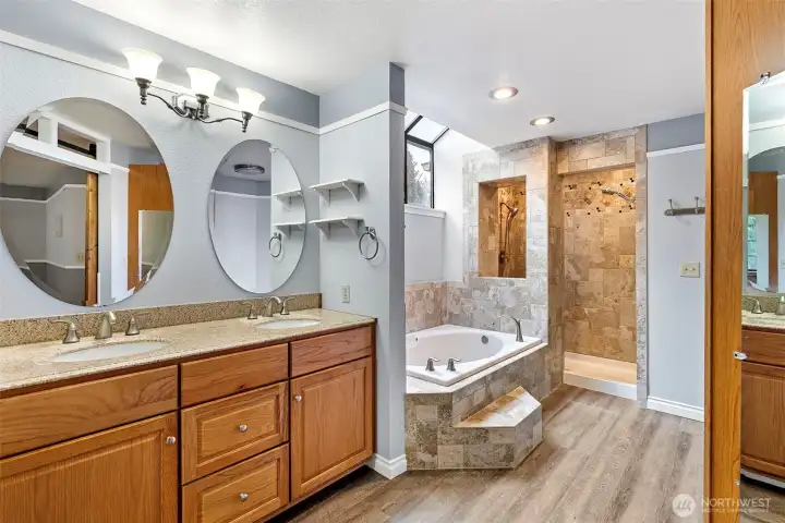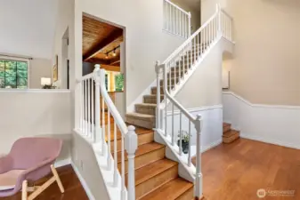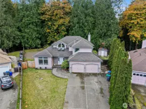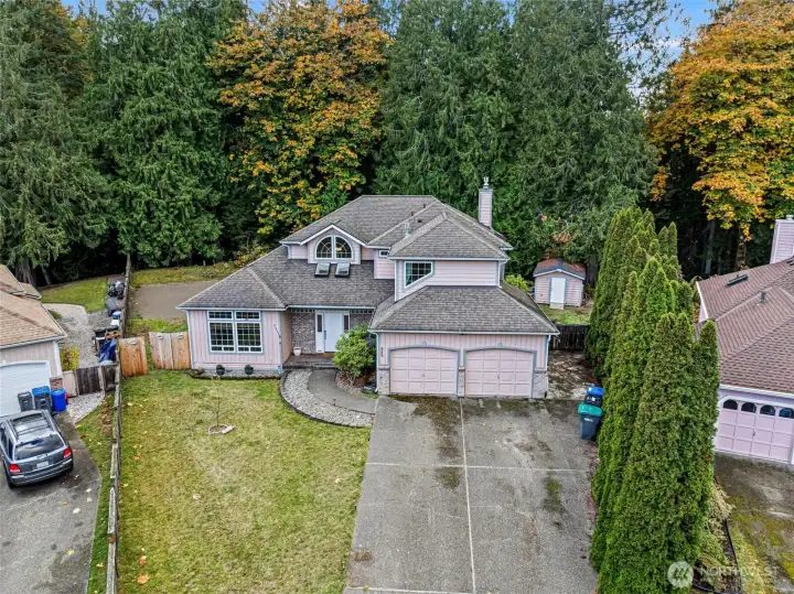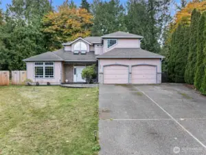 Stylish 3-bed, 2.5-bath stunner on nearly half an acre in Central Kitsap! Vaulted ceilings, skylights, and durable floors light up the open layout. The kitchen brings the wow with granite counters, island, breakfast bar, and exposed beam ceilings. Cozy up by the gas fireplace or entertain in the formal living and dining rooms. Upstairs: a spacious primary suite with 5-piece bath and walk-in, plus two more beds and full bath. Outside: massive yard with deck, fire pit, fruit trees, garden beds, and lush landscaping. RV parking, 2-car garage, central A/C, quiet cul-de-sac, and top schools. Completed geotech report clears the way for potential ADU—just bring your vision!
