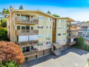 This spotless & spacious condominium shows beautifully. Enjoy lovely Puget Sound, golf course & territorial views as seen from the living rm & the spacious view deck. Grand living rm presents a classic, full brick mantled fireplace. Beautiful cook's kitchen shows SS appliances, granite counters & exceptionally attractive Shaker style cabinetry. Fully remodeled bath presents a stone tile flr & double vanity sinks. Both spacious bedrms present California Closets. New & beautiful hardwood flrs. Tons of natural light grace this hme! Exceptional storage inside the condo as well as an additional assigned storage unit. Deep 1 car garage plus an additional uncovered parking space. Washer & Dryer in unit! Community fitness rm, bike storage & shop!