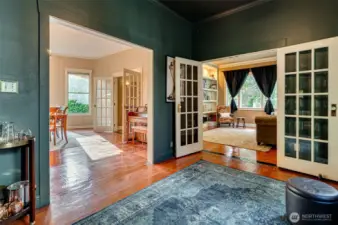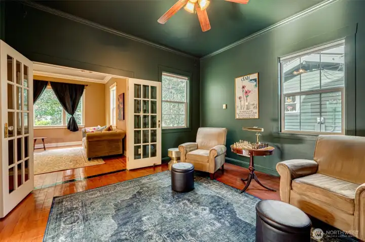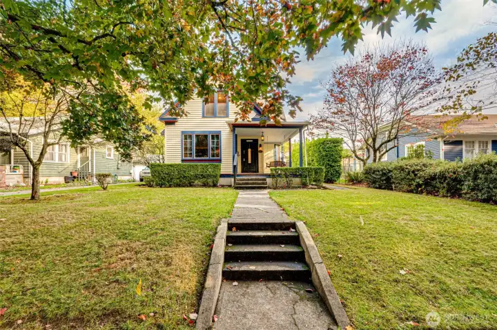 Step into history with this Queen Anne Victorian home. Constructed in 1900 and relocated from West Kelso to Longview in 1923, it has timeless charm with modern updates. Features include high ceilings, French doors, fir floors, chandeliers, and built-ins, plus updated electrical and plumbing. Main level offers formal living and dining rooms, a gorgeous remodeled kitchen, primary bedroom, and den or guest space. Upstairs has two bedrooms, full bathroom, a secret room, and a bonus room. Fenced yard, deck, extra parking, and detached garage with loft near the lake and city conveniences.