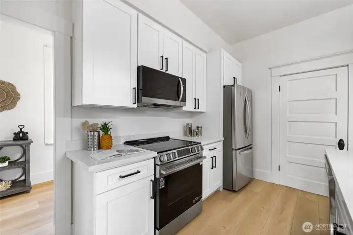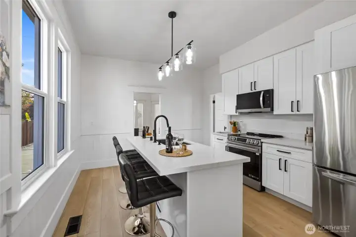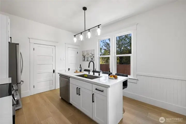 Victorian Charm Meets Modern Luxury! Step inside this meticulously restored 1902 Victorian where vintage elegance seamlessly blends w/ high-quality modern systems. This isn't just a house; it's a piece of history reborn, offering 3 bdrms, 1.5 baths, and a dedicated office. The fully remodeled kitchen offers soft-close cabinets, quartz counters, and stainless appliances. The primary suite features a LRG walk-in closet and an ensuite bathroom. Bonus: newer plumbing/ electrical, a PVC sewer, a 2021 high eff gas furnace, new windows/ updated insulation, new roof/ gutters, new int/ ext paint, new flooring, a restored garage w/ new siding/ door/ opener, and a newly fenced yard! Tons of parking with the front concrete driveway as a bonus! VALUE!