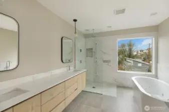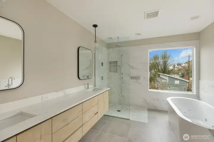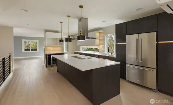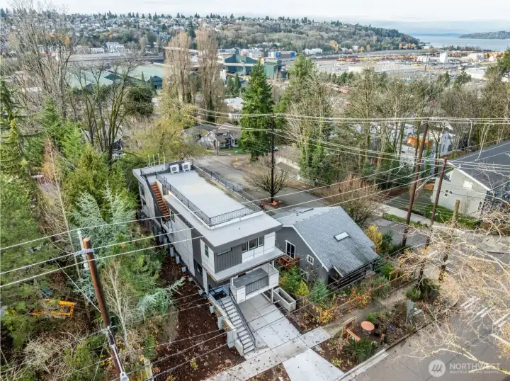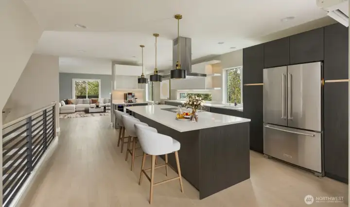 Experience elevated living in this modern,meticulously crafted new construction in coveted Pigeon Point. Designed with luxury at every turn,it features hardwood flooring throughout,custom cabinetry & closets,designer lighting,& composite decks on every level—including a spacious rooftop deck perfect for entertaining & enjoying sweeping views. The ground floor offers a private entrance to a full bedrm,bath,laundry,& kitchenette—ideal as MIL suite or rental. On the main level, a gourmet kitchen shines with a 10-ft quartz island, premium cabinetry,& seamless flow into open living/dining areas. Upstairs, the owner’s retreat offers a spa-inspired 5-pc bath with rainfall shower & jetted soaking tub.Mins to Alki Beach,Seattle,& everyday amenities.