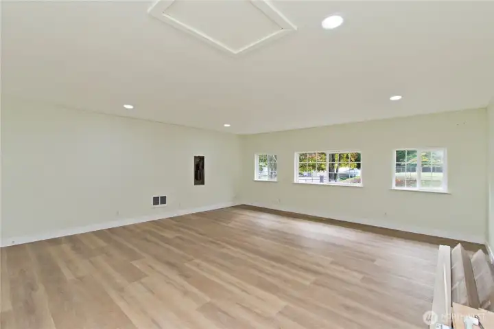 Beautifully updated rambler just shy of 1,700 sq ft featuring 3 bedrooms and 2 baths. Step inside to an open floor plan with vaulted ceilings and a cozy wood-burning fireplace. Updates include new interior paint, millwork, lighting, fixtures, flooring, and water heater. The stunning kitchen offers new cabinets, quartz countertops, and stainless-steel appliances. Private primary suite with walk-in closet and custom-tiled shower. Versatile 440 sq ft bonus room ideal for a home business or recreation room. Enjoy outdoor entertaining with a spacious backyard with room to store all your toys. Exterior updates include NEW paint & roof. Extras include concrete patio, shed & R.V parking. Desirable location, come see before it's too late!