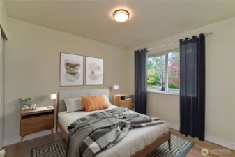 Beautifully updated rambler just shy of 1,700 sq ft featuring 3 bedrooms and 2 baths. Step inside and fall in love with the open floor plan, vaulted ceilings, and designer finishes throughout. The updated kitchen offers new cabinets, quartz countertops, and stainless steel appliances. The spacious primary suite features a walk-in closet and private bath with updates that include a new vanity and custom-tiled shower. Additional updates include new interior paint, millwork, lighting, fixtures, flooring, and water heater. A versatile 440 sq ft bonus room is ideal for a home business, child care, nursing home setup, or recreational room. Entertain guests this summer on the large back patio and enjoy the spacious backyard with room to store all your toys. Exterior updates include new paint and a new roof.