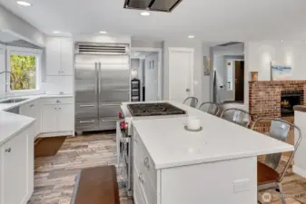 Beautifully updated rambler in the highly desirable English Hill community. This thoughtfully remodeled home features a stunning, fully updated kitchen with high-end Sub-Zero and Wolf appliances, slab quartz counters, and a spacious breakfast bar overlooking the inviting family room with heated floors. A/C! The open layout creates a perfect flow for everyday living and entertaining. The large primary suite offers a luxurious, completely updated bath, while two additional bedrooms and a full bath provide ample space for guests. No carpet throughout for easy maintenance. Enjoy outdoor living with a fenced yard and expansive mahogany deck. Quiet cul-de-sac location, top-rated Northshore schools, close in location to everything!