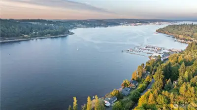 Where water meets wonder, this rare waterfront property evokes the adventurous spirit of Tom Sawyer. Boasting 165 ft of low/no bank frontage & a large boulder bulkhead extending approx. 10 ft beyond neighboring shorelines, it offers exceptional access to the water. Enjoy deep-water protected moorage, a floating dock & private boat ramp for effortless recreation. The 2,588 sq ft home frames mountains & Sinclair Inlet through picture windows, surrounded by mature landscaping with various fruit trees, including figs, plums, grapes, & blueberries & garden space. Covered RV parking, full RV hook-ups, easy access to Hwy 16, Bay St shops & PSNS make this an incomparable opportunity.
