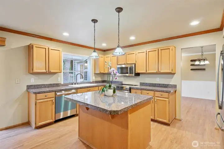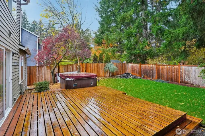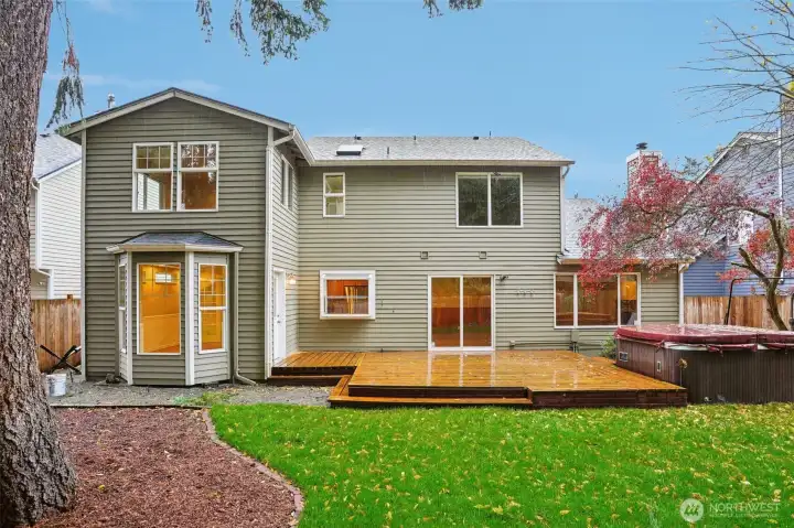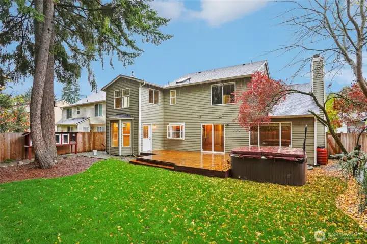 Welcome to this wonderfully updated 3 bed, 2.5 bath home in the highly desirable Sunrise Community! The spacious main level features a bright, open-concept kitchen w/large island, dining area, & new appliances that stay! The kitchen flows seamlessly into an inviting living room w/ a cozy gas fireplace. Enjoy fresh interior paint & new flooring throughout. Upstairs, the large primary suite includes a walk-in closet & en-suite. Two additional generous bedrooms, a full bath, & plenty of storage complete the upper level. Step outside to your private, fully fenced backyard w/ a large deck, hot tub, and new landscaping. Additional updates include a new architectural composition roof. This sought-after community is a beautiful place to call home!