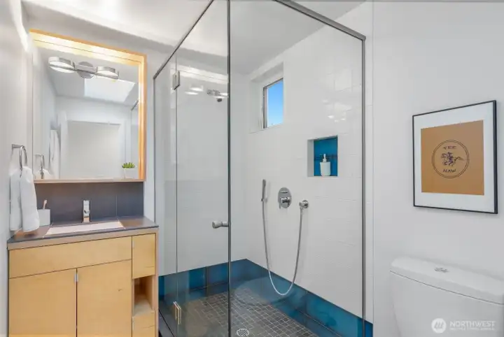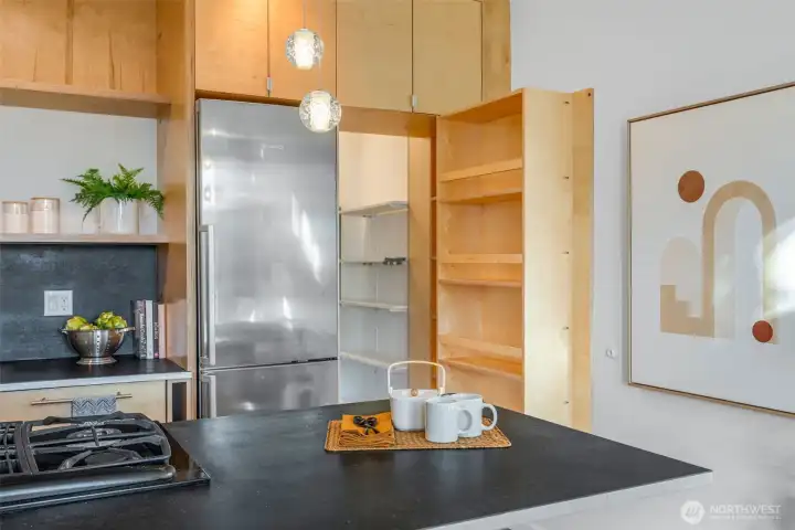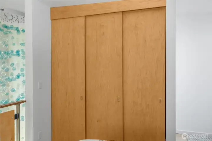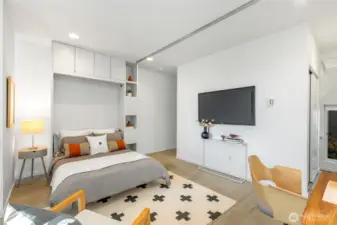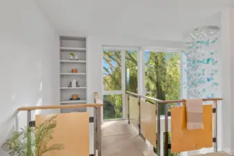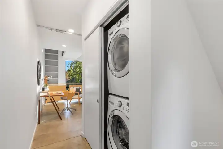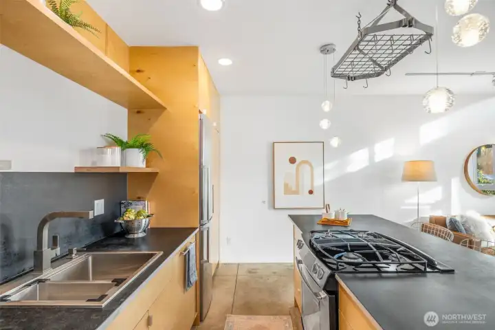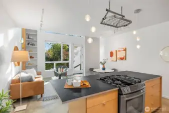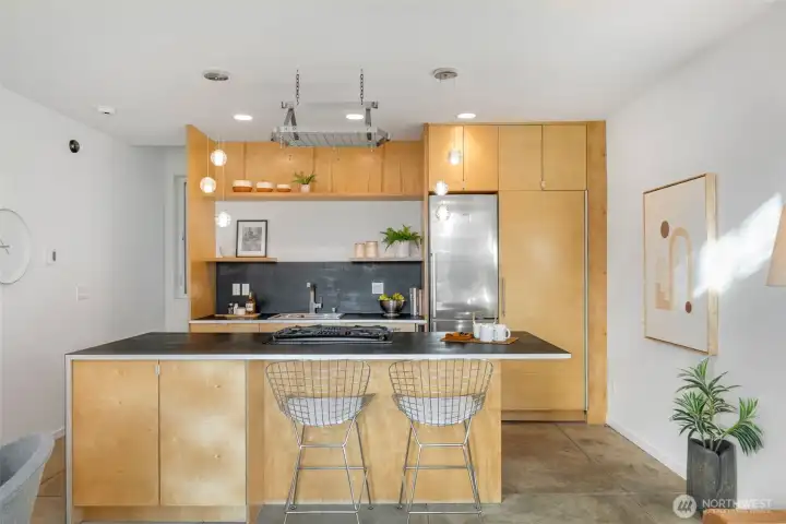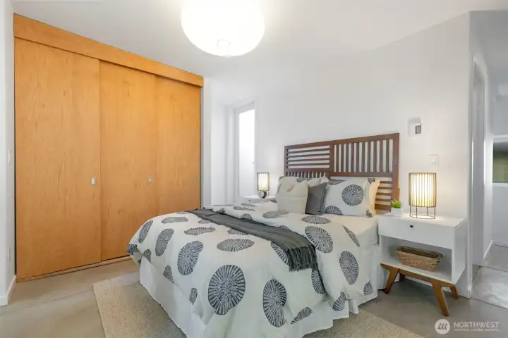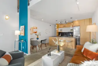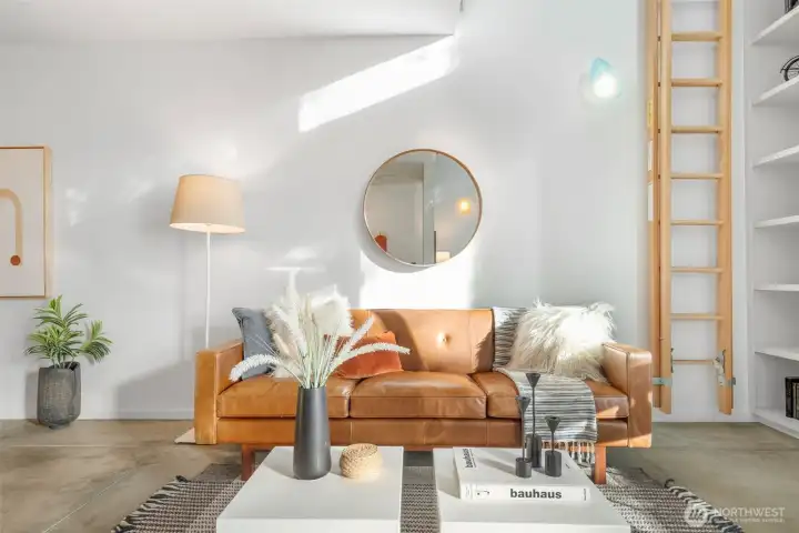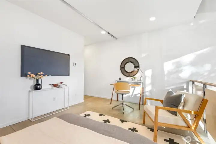 Soaring 30’ ceilings and walls of glass define this 5-Star Built Green home perched above Miller Park on one of Capitol Hill’s most coveted streets. Thoughtful, modern design blends warmth and sustainability through radiant concrete floors, maple cabinetry, and triple-pane windows. A sculptural bookcase grounds the kitchen and living area, illuminated by designer lighting. The top-floor primary suite opens to treetop views across an interior bridge to the dramatic window wall, while a flexible, light-filled second bedroom with Murphy bed floats above the living space below. Enjoy mountain views from the rooftop deck and a prized location moments from Monsoon, Hello Robin, Rocket Taco, and other neighborhood favorites.