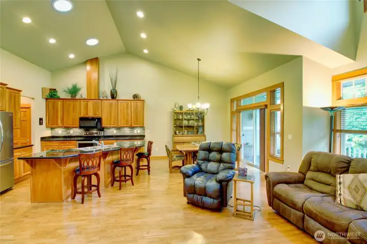 Gorgeous low maintenance single story living at its finest in beautiful Eaglemont Community. 1730 Sq. ft.with 2 bedroom and den/office. Features open floor plan with vaulted ceilings, stainless steel appliances, eating bar flows seamlessly into to dining & living. Cozy gas fireplace with expansive windows to a private patio/deck and open space providing lush greenery backing to protected area. Primary offers 5-piece bath & walk in-closet. Office w/French doors, 2nd bedroom w/bathroom, 2 car garage. great for guest. Close to all amenities, shopping, transportation, medical, with easy access to I-5. Make this your special home!