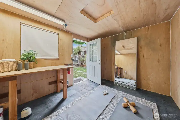 Welcome to this truly special 1908 Ballard cottage, situated above the street for exceptional privacy and a charming vantage point. Step inside to discover original character, with stunning hardwood floors and abundant natural light. The floorplan is efficient and inviting, including a spacious kitchen and mudroom with laundry area. Comfort is covered year-round by recently installed mini-splits for heat and A/C. A detached studio offers ideal flexibility for a home gym, office or creative space. The backyard is a peaceful haven, with mature fruit trees, raised beds, and a 500-gallon rainwater collection system. Experience incredible walkability to Ballard's vibrant breweries and cafés. A charming turnkey escape in a truly coveted location.