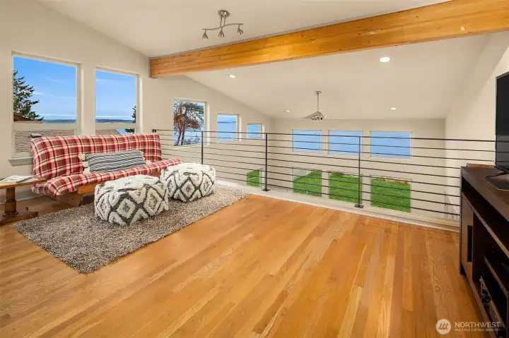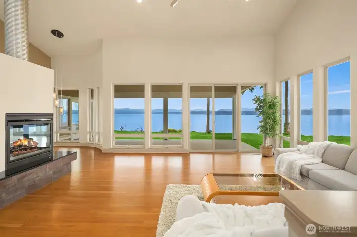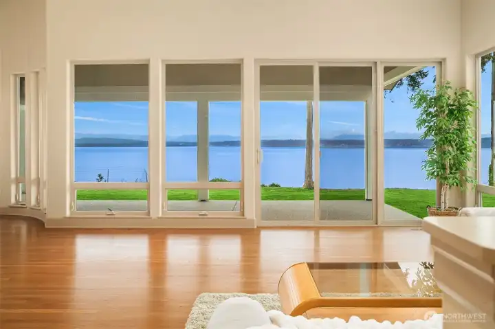 Rarely available—over 1 acre of level, bluff waterfront in the sought-after Camano Country Club with sweeping views of Mt. Baker, the Cascades, and glowing sunrises. This “like new” home, used less than a week in total, offers an open floor plan with hardwoods, marble, a wall of windows, and a chef’s kitchen with premium appliances and a built-in espresso machine. Enjoy a spacious primary suite with 5 piece ensuite, loft with half bath, additional 3/4 bath, large second bedroom + additional guest room, covered patio, grassy yard along with a deck off of the primary. Optional club membership provides access to pool, gym, clubhouse, and three private beaches—all just an hour from Seattle with access by bridge. Exceptional value!