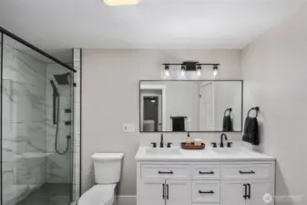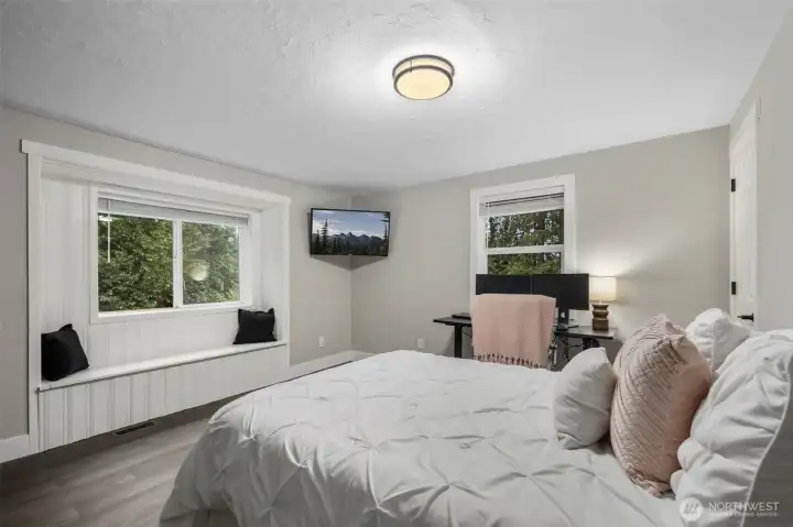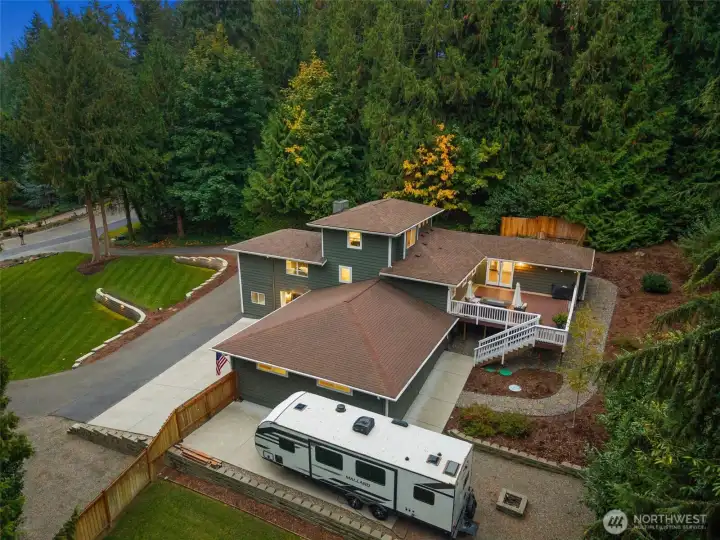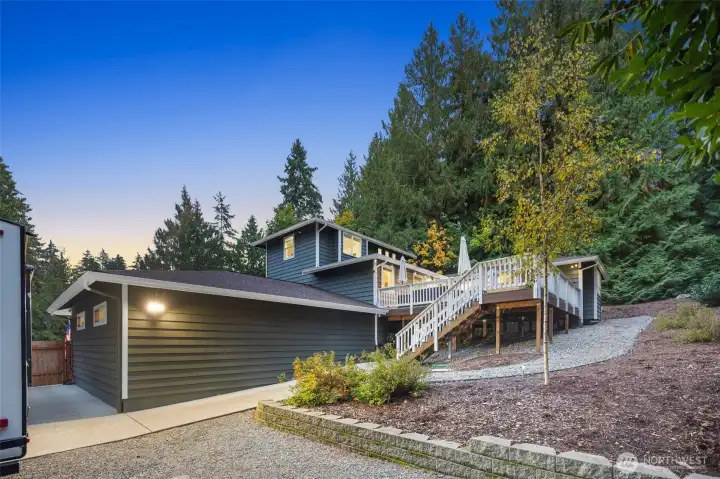 Welcome home to your remodeled gem nestled on a private .8-acre lot in the sought-after Rodesco Community! This 4-bed, 3-bath, 3,575 sq ft home showcases an impressive full renovation featuring a designer kitchen, modern bathrooms, custom closets, updated fireplaces, and stylish flooring throughout. The inviting front deck opens to a grand great room filled with natural light and flagstone accents. Enjoy a new water heater and an energy-efficient heat pump with A/C for year-round comfort. The primary suite includes a walk-in closet and ensuite shower, while downstairs offers a family room, great gym space, spacious laundry room, and ample storage. Enjoy a peace of mind as this home comes with a FREE 1-year warranty for added protection!