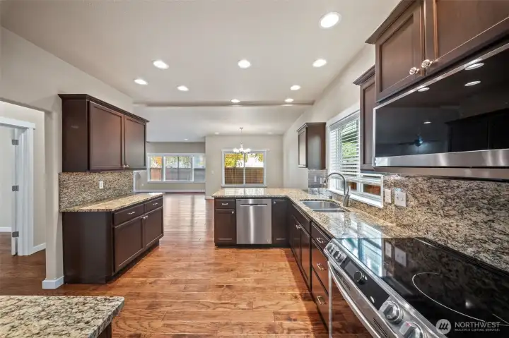Beautifully maintained 5-bedroom home nestled in a quiet cul-de-sac near Oly Schools and shopping! This spacious layout includes a main-level office/flex room, large primary suite with 5-piece bath, granite in bathrooms, and convenient upstairs laundry. Enjoy year-round comfort with a heat pump and a low-maintenance fenced yard. The kitchen shines with granite counters, walk-in pantry, and upgraded induction range—all appliances included. Fresh interior paint, new carpet, security system, and ethernet wiring throughout make this move-in ready home a rare find!