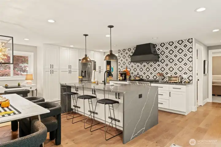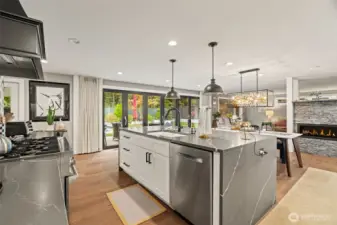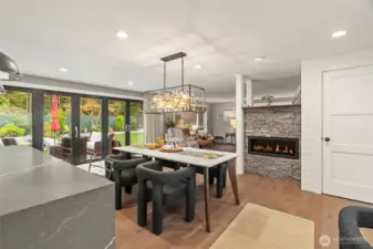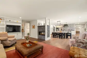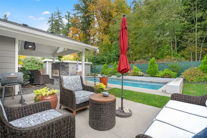 This stunning single-level Woodway home has been beautifully remodeled with timeless design and high-end finishes throughout. The open-concept floor plan flows effortlessly between the living, dining, and kitchen spaces, leading through a dramatic 16’ sliding door to a private backyard retreat. Enjoy resort-style living with a sparkling pool, covered patio, outdoor fireplace, and lush landscaping perfect for entertaining or relaxing. Inside, quartz counters, rich hardwoods, wool carpet, and a striking indoor fireplace add warmth and character. The luxurious primary suite features a spa-inspired marble bath. A/C for warmer days. Backing to the Woodway Reserve, this home offers privacy, and access to scenic walking trails just steps away.