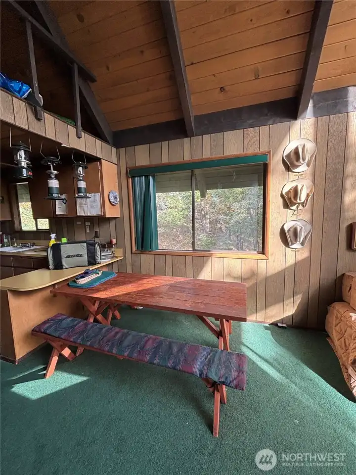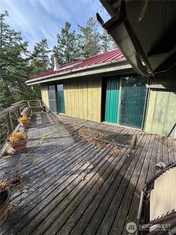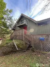 Tucked among lush greenery on a private 0.56-acre lot, this 3-bed, 1-bath home offers 1,038 sq ft of inviting living space that feels like a cozy tree house. Multiple wood decks create seamless indoor-outdoor living, and a fireplace adds warmth to the bright, open interior. A storage shed provides extra convenience, and an almost-new 2024 4-wheeler is included (used only to access property). Also included is a 3,484.80 sq ft special-use hangar lot just off the main airstrip, offering added ease and flexibility for travel to and from the island. The community features a beach, airstrip, and boat launching area, with a desirable south-facing orientation overlooking historic Roche Harbor. This tranquil escape blends comfort and coastal beauty.