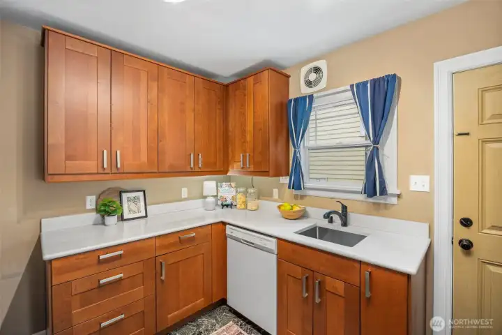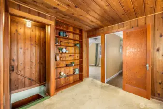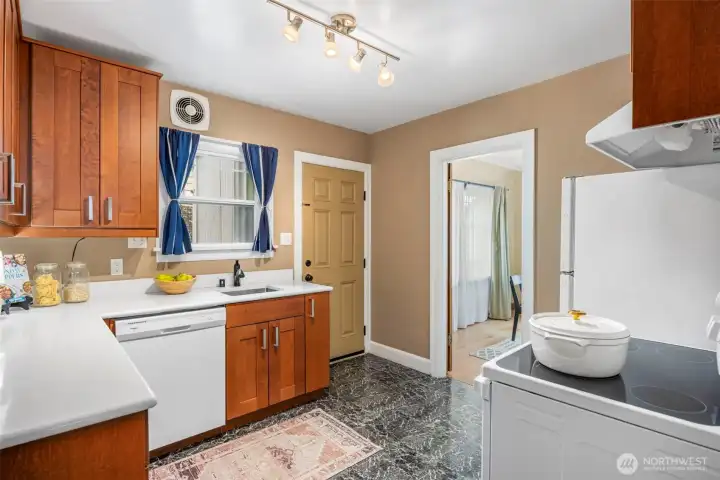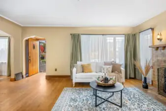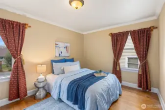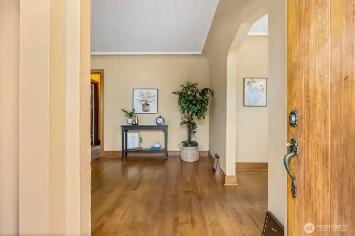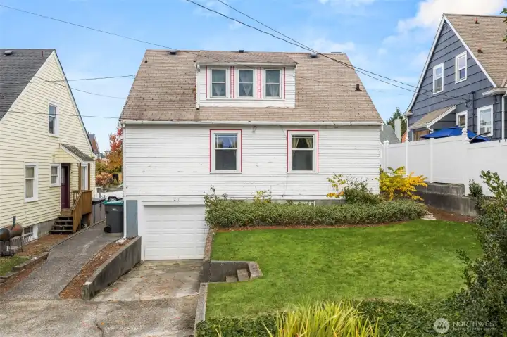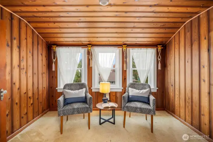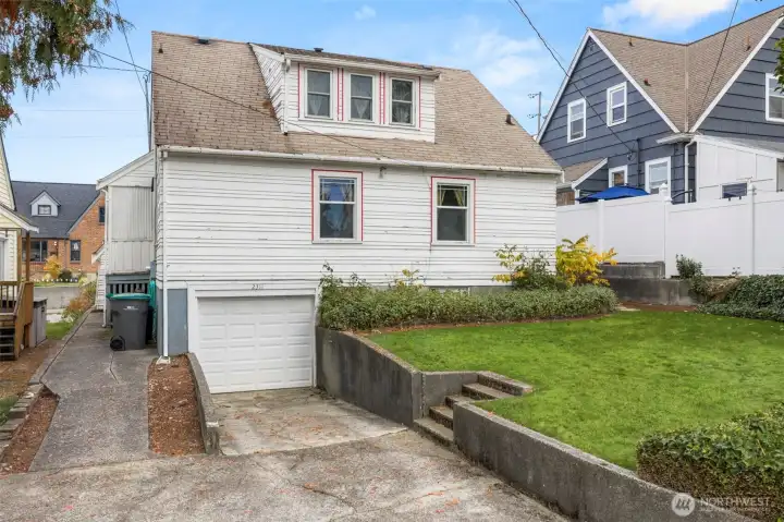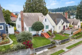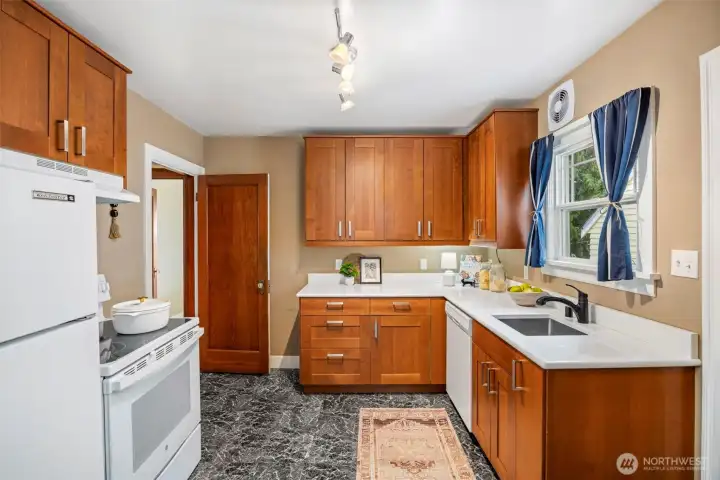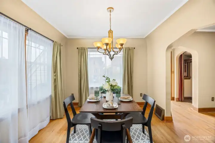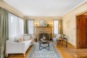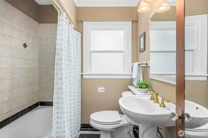 Vintage beauty 4 BR 1.5 bath loaded with timeless character, wonderful flow & modern function. Original hardwood floors. Original doors, door handles & skeleton keys. Elegant gothic archways. Charming coved ceilings. Spacious inviting living room with Batchelder inspired wood burning fireplace. Beautifully updated kitchen. Open sunny dining space. 2 BR and full bath on main floor. Upper level features enchanting knotty pine bonus space, 2 BR's and half bath. Tons of storage space upstairs. Large unfinished basement with 1 car garage. Alley access to garage. Vinyl windows. Gas heat. This home has been well loved for decades and enjoys a quiet tucked in location. Just minutes to PSNS & Seattle ferry.