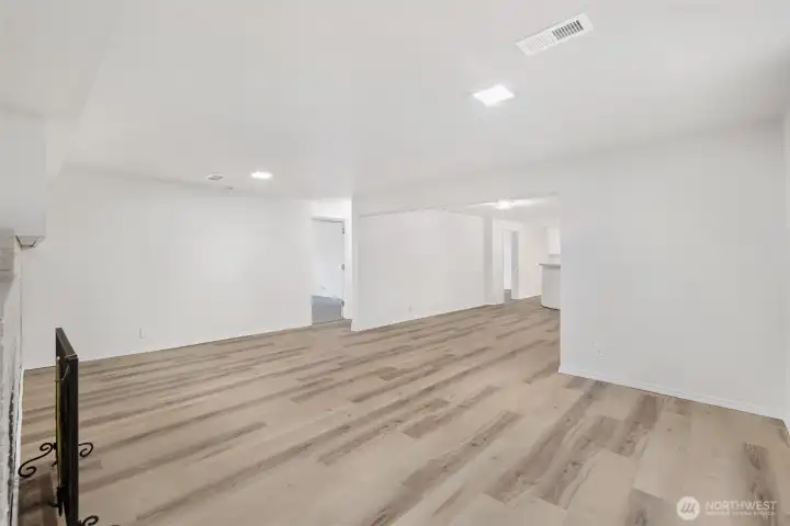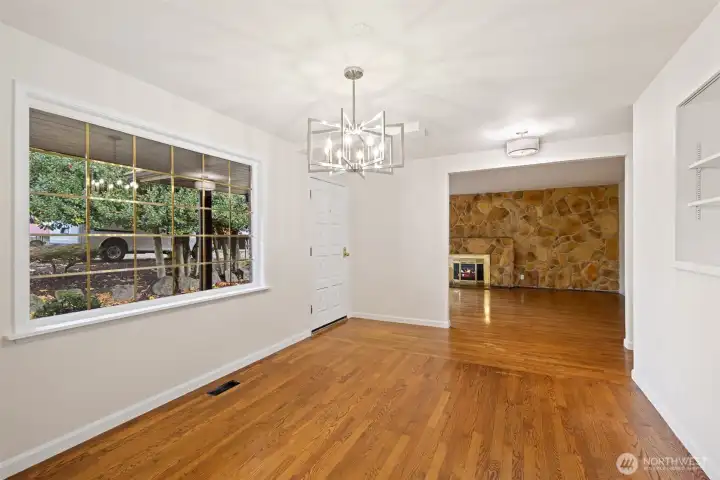 Experience timeless charm and modern comfort in this beautifully updated 4-bedroom, 1.75-bath home offering 1,900 sq ft of refined living. Rich hardwood floors flow through the main living and dining areas, centered around a stunning floor-to-ceiling stone fireplace. The lower level features brand-new LVP flooring, carpet, lighting, and hardware, plus a spacious second kitchen—perfect for gatherings or extended stays. Fresh interior paint throughout. Kitchen features brand new LVT, stainless steel appliances and large pantry with pull out shelves. Enjoy the large outdoor space with a built-in fire pit. Oversized one-car garage, plus driveway parking. Conveniently located, this thoughtfully updated home blends elegance and everyday ease.