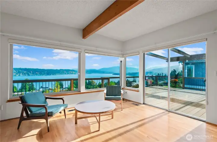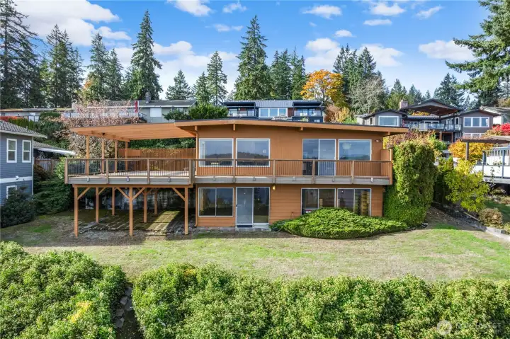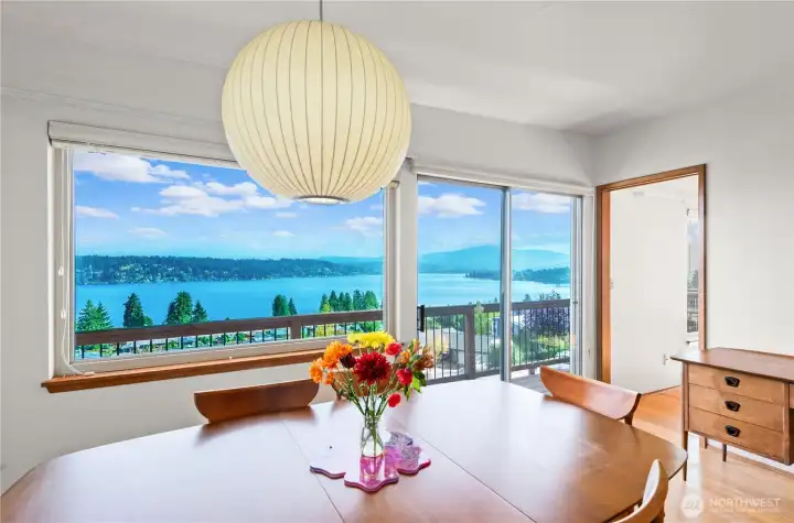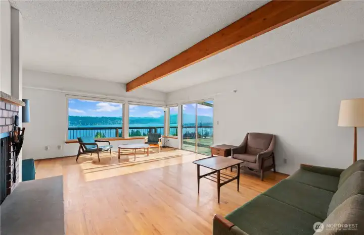 Truly unparalleled sweeping views of Lake Sammamish & mountains. These wrap-around views are from both levels & are protected by neighborhood covenants! Rare opportunity – first time this home has ever been on the market. Being sold by the original family who had it custom built in 1964! Mid Century modern–inspired 5BD/2.25BA home offers 2,920 sq ft of living space on a 10,320 sq ft lot. Features include original hardwood floors, two wood-burning fireplaces, & an expansive walkout basement, large bonus room, & extra workshop space. The primary suite includes a walk-in closet & private bath. Endless potential in this original home with unbeatable location & views. Exclusive Sammamish Beach Club access. Plus top rated Bellevue schools!