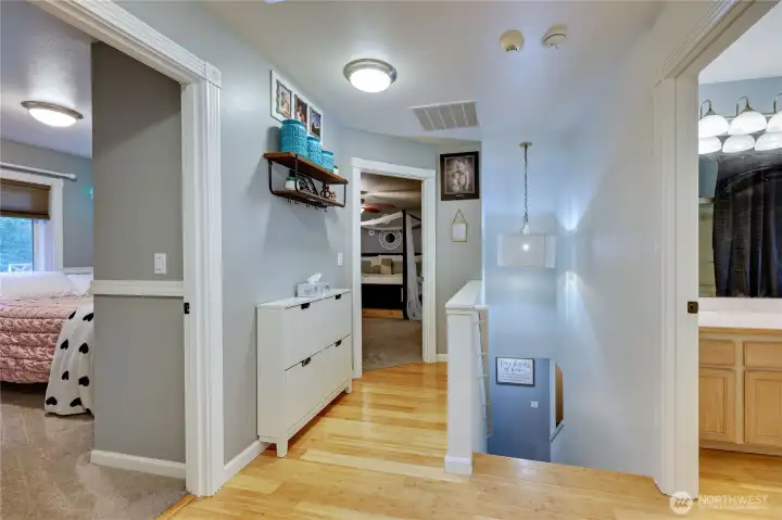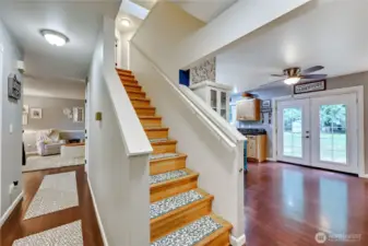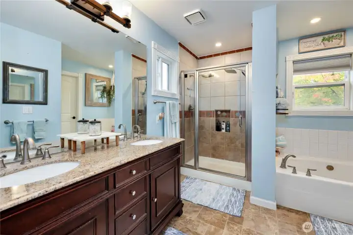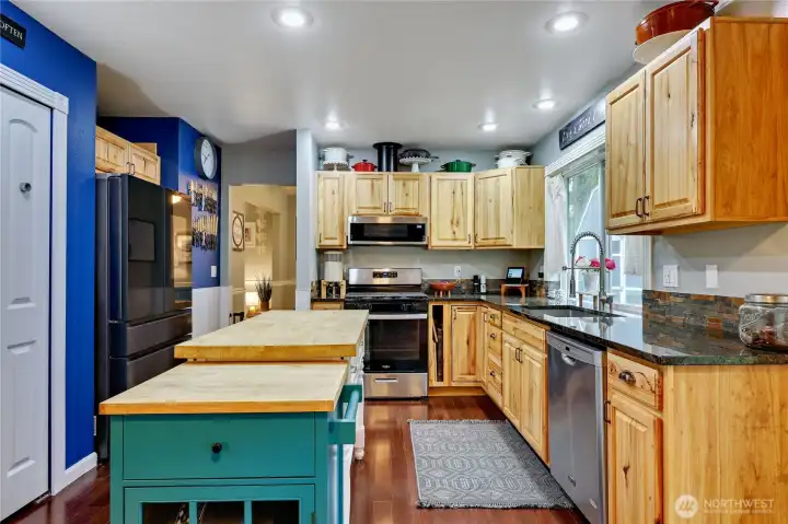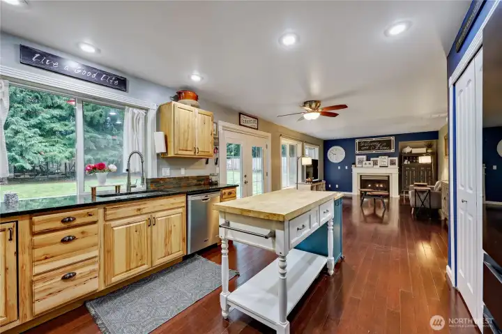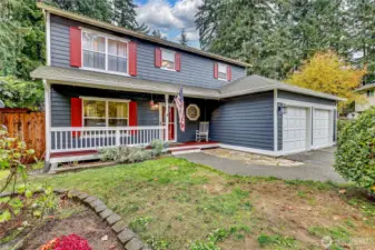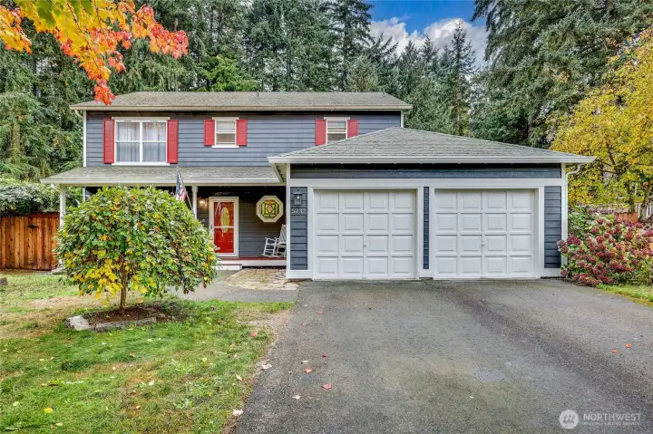 Welcome to your peaceful Port Orchard retreat! This spacious 4-bedroom home delivers nearly 2,020 sq ft of comfortable living space on a generous 1/3-acre lot in a quiet cul-de-sac. Step inside and discover dark bamboo flooring throughout most of the main level. The updated kitchen is a highlight, featuring beautiful hickory cabinets, stainless steel appliances, and elegant granite countertops. On chilly days, you'll love curling up by the cozy gas fireplace in the family room. Upstairs, you'll find a spacious primary suite along with three additional bedrooms. Large yard with 194 sqft shed w/ 60-amp panel. Home also has 30 amp RV hookup and is wired for a generator. This home effortlessly delivers comfort, convenience, and value.
