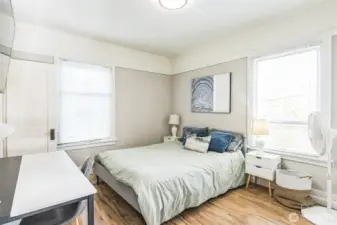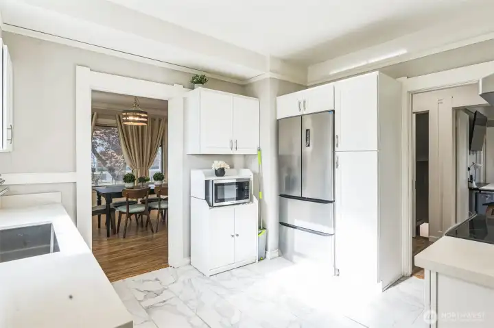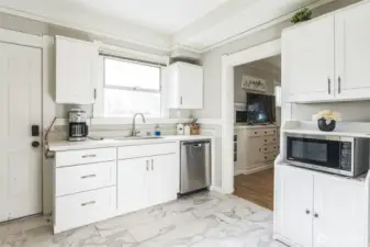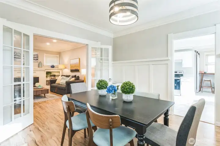 Fantastic opportunity to own sizable property in sought after Woodland Park! This beautifully updated home, zoned C155, provides incredible flexibility w/ 2 separate entrances, 2 distinct living spaces, and 2 fully equipped kitchens, ideal for a home business or rental potential. The interior has a mix of hardwood, laminate, tile, and LVP throughout. The main level has a spacious Primary, living room, and dining room. Both kitchens feature quartz countertops. ADA-compliant basement-use for an office, waiting area, or in-law suite/apartment. Upstairs, you'll find two additional bedrooms with a shared full bath. Enjoy two dedicated off-street parking spots, plus unlimited parking on nearby side streets. Just a 1-minute walk to Woodland Park!