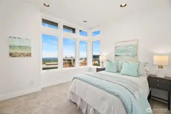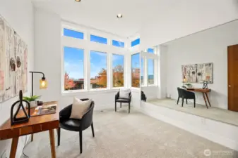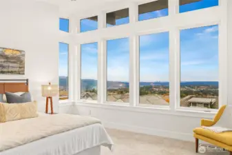 Modern solar-powered resort living with panoramic views of Seattle, Bellevue, and Issaquah foothills, perched high in the Harrison St neighborhood! Live above the clouds, basking in sunshine even on misty mornings. Thoughtfully designed for light, art, and connection, featuring gallery-like spaces w/ stunning views. A luxurious Primary Suite w/ spa-inspired finishes. Indoor/outdoor living in a resort-style backyard with a spectacular water fall, modern fire pit, greenhouse, swim spa and a hot tub. Ideal for entertaining or unwinding in privacy. Nestled on a greenbelt lot with a finished 3-car garage, solar array, and over $700K in premium upgrades since last sale. Truly modern, mindful, magnificent!