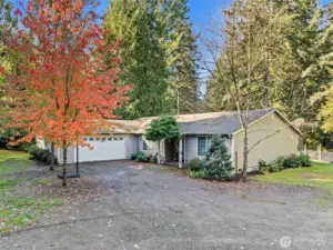 Tucked away at the end of a quiet road, this peaceful 9+ acre retreat offers room to roam & play. The single-level home welcomes you w/vaulted ceilings, skylights & a bright open layout designed for comfortable living. The open kitchen features a double oven, walk-in pantry & breakfast bar that flows into the dining & great rooms. Primary offers a 5-piece bath, walk-in closet & deck. Step outside to enjoy lake views, pastures, and plenty of open & wooded space for gardens & hobbies. Attached 2-car garage, RV parking & outbuilding. The cherry on top..a nearly ready-to-go ADU site on the west side w/its own well & septic! A rare find for those wanting acreage & the beauty of the Key Peninsula lifestyle, just a short drive to beaches & town.