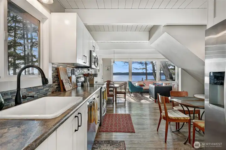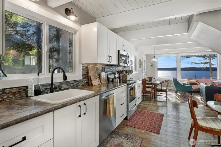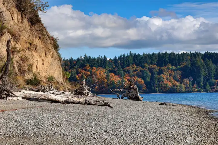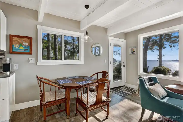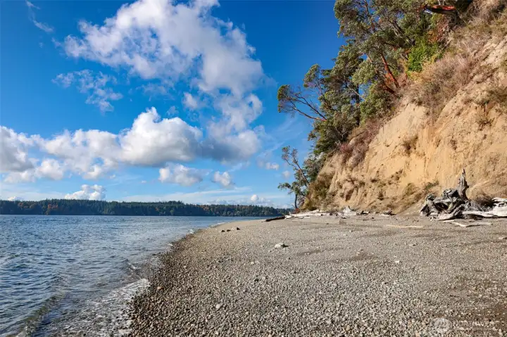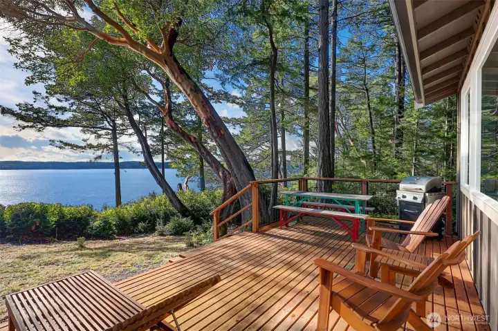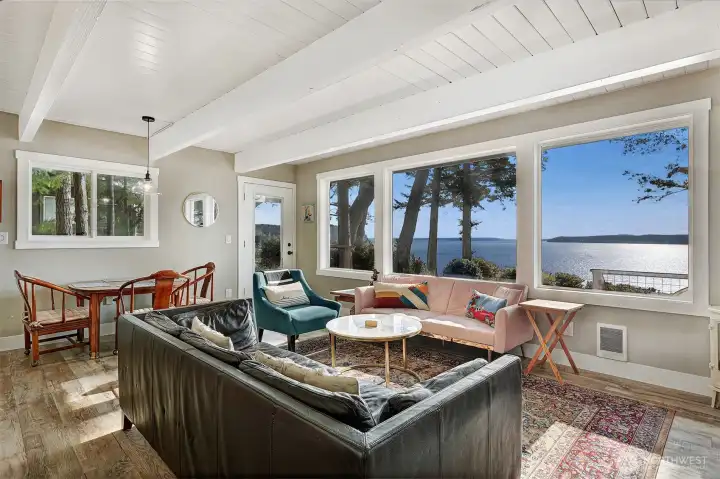Amidst the tranquility of Herron Island awaits this charming high-bank waterfront retreat. Walk in and be greeted by wall to wall windows with sweeping South Sound views that are nothing short of spectacular. Flooded with natural light yet nestled amongst madrona trees and tucked away from the world, this property truly offers the escape you've been dreaming of. Enjoy sunrise coffee on the deck, sunsets and stargazing perched above the water, and beach strolls and kayaking from the trailhead just feet from your front door. Thoughtfully updated throughout and tastefully decorated, this cottage invites you to enjoy the best of Puget Sound island living from day one.