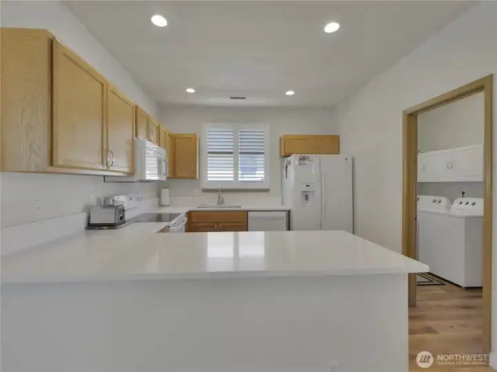 Fall in love with resort living@ Jubilee the premier adult community of the PNW. This Low-Maintenance home has been meticulously maintained 2-bedroom, 1 ¾-bath home, offering a perfect blend of comfort and convenience. The open floor plan is flooded with natural light, creating a bright and inviting atmosphere throughout. Recent updates include stylish LVP flooring, sleek new quartz countertops, and fresh trim, bringing a modern touch to the space. New high-efficiency furnace w/AC ensures year-round comfort, while the newer roof and upgraded appliances provide peace of mind for years to come. Outside, enjoy a beautifully landscaped, low-maintenance backyard, complete with a relaxing patio ideal for unwinding or entertaining.