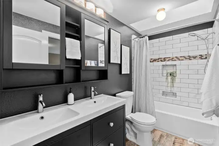 Tucked in the heart of Tumwater Hill, this charming home blends warmth, convenience & style into one irresistible package! An enviable central location, steps from Jim Brown Park w/playfield, pickleball & picnic area. Enjoy great curb appeal w/fresh exterior paint & a lush, fully fenced backyard w/expansive deck, garden space, pear, Japanese maple & silver birch trees. Inside, main floor layout feels open & inviting, w/kitchen boasting newer ss appliances & an eating bar that flows to dining & living w/lg windows & a cozy wood stove. Upstairs, 3 spacious BRs & an UPDATED bath provide comfort & modern ease. An oversized 2-car garage adds exceptional storage AND a handy workbench. Love where you liveāthis Tumwater gem is the one to call home!