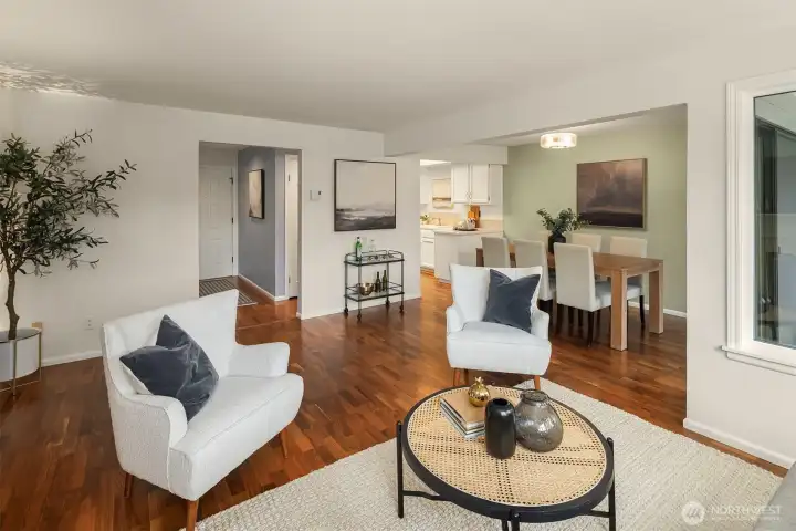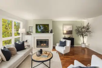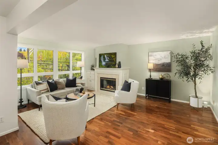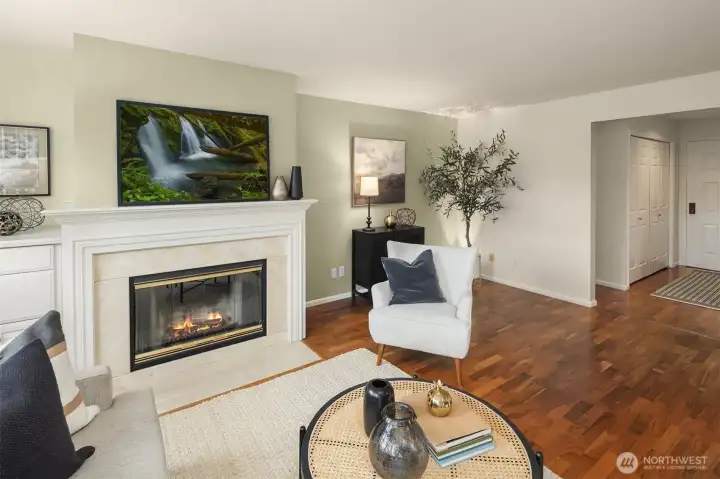 Welcome to Windermere North! This spacious 2-bedroom, 2-bath condo offers 1,152 sq ft of comfortable living space with beautiful hardwood floors throughout the day rooms and brand new carpet in the bedrooms. The cozy wood-burning fireplace and access to a private balcony are perfect for relaxing or entertaining year-round. The large primary suite easily fits a king-size bed and features a generous walk-in closet. Enjoy the convenience of in-unit laundry, a dedicated parking spot in the secured garage, and a pet-friendly community. Located near the Burke-Gilman Trail and Magnuson Park, you’ll love the easy access to outdoor recreation, UW and U-Village.