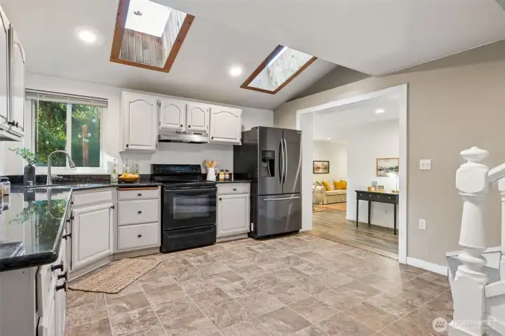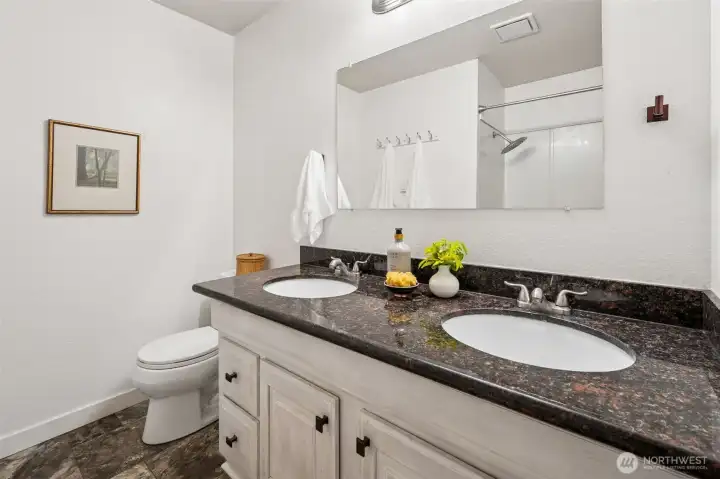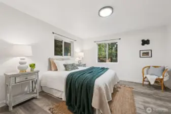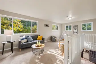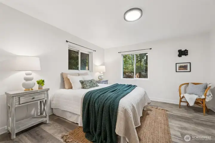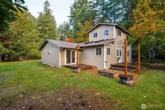 Welcome to this beautifully refreshed 3-bedroom, 1.75-bath Sunwood Lakes home surrounded by lush PNW scenery. Step inside to a bright, inviting layout featuring fresh interior updates, paint, and a kitchen with a clean, modern feel that blends warmth and functionality. The open flow creates comfortable living and dining spaces, while the upstairs loft offers flexibility for a second living area, playroom, or home office. Outside, the backyard is a true retreat—multiple decks and a peaceful patio area with fire pit among the trees create the perfect space to relax or entertain. HOA covers water bill. Enjoy community amenities including a pool, clubhouse, tennis courts, & trail, all just minutes from shopping, schools, and I-5 access.