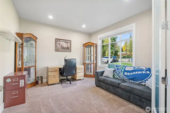[BRIGHT + INVITING] This 2022-built Lake Stevens rambler offers the perfect blend of comfort and style on over an acre backing to a peaceful greenbelt for added privacy. Nearly 2,500 sq ft of open, functional living with 3 bedrooms, 2 baths, and an office. The light-filled kitchen features quartz countertops, a large island, and plenty of storage—ideal for gatherings + entertaining. Relax by the gas fireplace in the spacious living room or unwind in the spacious primary suite with a spa-like en-suite and walk-in closet. You'll love evenings on the deck, around the fire pit. 3-car garage + carport for parking and storage. Modern finishes throughout. Built in home generator! WELCOME HOME!